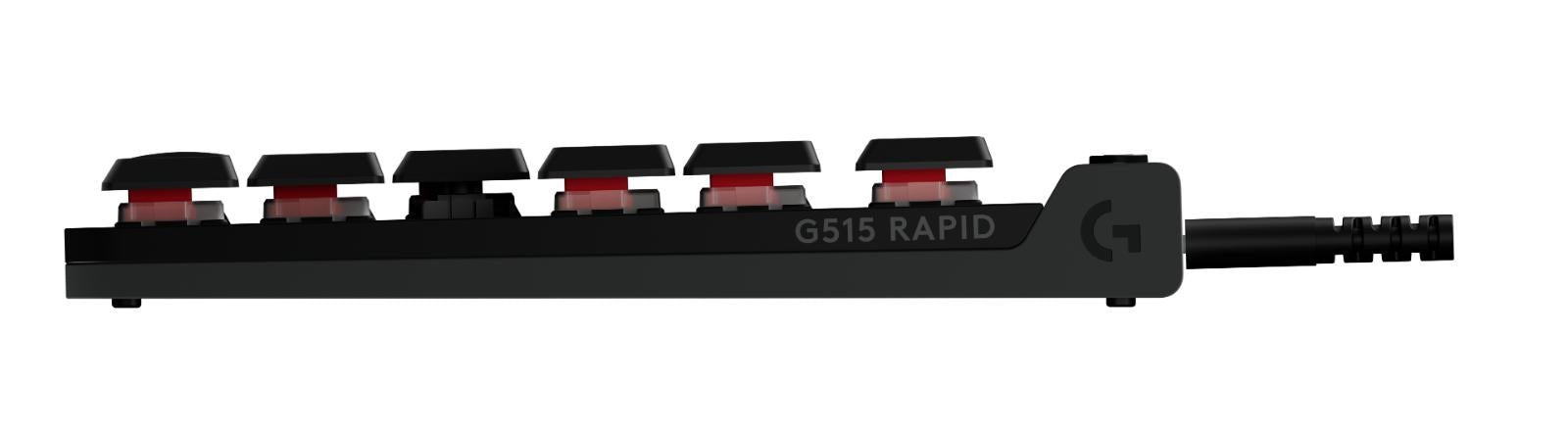 G515 RAPID TKL analog keyboard combines low- profile design and ultra-fast 0.1 – 2.5mm switches with high performance rapid trigger and customizable actuation. Only 22mm high, G515 RAPID TKL delivers exceptional ergonomic support, stainless steel top plate, double-shot PBT keycaps, and G HUB for deep control of your gaming experience.Features:* Low Profile Analog Switches: Precise and responsive, the analog switches on this low-profile TKL gaming keyboard offer a fast 2.5 mm travel, smooth and consistent keystrokes, and lasting durability* Ultra Slim Design: At only 22 mm high, this slim keyboard combines sleek style and ergonomic support with reduced key travel for faster, more responsive gaming performance* Customizable Actuation: Fine- tune the low- profile magnetic analog switches from 0.1 mm to 2.5 mm for personalized performance during competitive play for gamers* Rapid Trigger: Magnetic analog switches can dynamically reset immediately allowing for rapid repetition of keystrokes without needing to fully lift your finger to re-activate* Key Priority: Set which key takes priority when two opposing keys are pressed at the same time enabling more fluid movements* Multipoint Action: Allows the configuration of specific actions on one key by setting two actuation points for quicker transitions such as walk and run* Fully Customizable: Use G HUB to customize per- key actuation, Rapid Trigger, Key Priority, Multipoint Action, and LIGHTSYNC RGB, turning your keyboard into a personalized control center* Premium Components: A stainless steel top plate, oil resistant double-shot PBT keycaps and magnetic analog switches ensure high performance and lasting durability.Specifications:* Low-profile key switch: * Actuation force: 35 +/- 7 g * Total travel distance 2.5 mm * Customizable Actuation from 0.1 mm to 2.5 mm * Rapid Trigger (1) * Key Priority (1) * Multipoint Action (1)* Physical specs: * Length: 354.75 mm (14 in) * Width: 146 mm (5.8 in) * Height: 22 mm (0.9 in) * Weight w/o cable: 800 g (31 oz) * Cable length: 1.8 m (6 ft)* (1) Advanced features require Logitech G HUB Software available for download at logitechg.com/ghubWhat's in the box:1. G515 RAPID TKL Analog Gaming Keyboard2. USB-A to USB-C Cable3. User Documentation