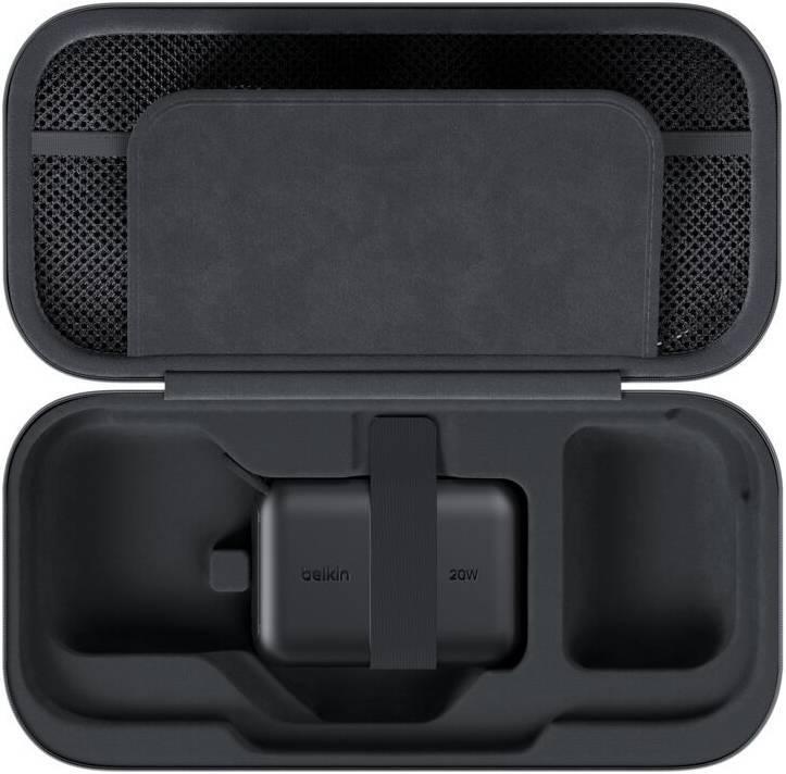 Keep your game on. You can power up and play longer with a premium charging case built specifically for the Nintendo Switch 2. Engineered with high-capacity charging and crafted from durable, high-quality materials, it offers reliable power on the go — plus superior protection against scratches, bumps and drops.* Safely charge, store, and transport your Nintendo Switch 2* Recharges Switch 2 up to 1.5 times with removable 10K power bank* LCD screen on the power bank shows remaining battery level* Kickstand groove allows tabletop mode play while charging in case* Power bank with Belkin SmartProtect assures safety through rigorous testing* Game card storage flap keeps your favorite titles neatly arranged and easily accessible* Hidden AirTag (not included) compartment ensures your case stays secure and easy to track* Durable abrasion- and water-resistant, polyester exterior, brushed velvet interior lining* Smooth, hidden, no-snag heavy-duty zipper* Charge console while stored and closed* Easily transport with convenient top handle* 100% plastic-free packaging* 2-year warranty*Connect, Charge, Dominate:* Stay in the game with a custom-designed case featuring a detachable 10,000 mAh power bank and USB-C cable.*More Power to Your Play:* Extend your winning streak with charging power that delivers extra playtime.*Game Ready at a Glance:* Check your power level instantly with a built-in digital display.*Game Card Sleeve:* Holds up to 12 games for easy access to your library anytime, anywhere.*Mesh Utility Pocket:* Perfect for your cables and other essentials.*Play While Charging:* Power your Switch 2 uninterrupted with a kickstand-ready case.*Hidden AirTag Compartment:* Add an AirTag (not included) to track with Apple Find My.*Portable Powerhouse:* Streamline your setup with a charging case made for gaming on the move.*Built to Take the Hits:* Smart protection with a tough shell, soft interior and clean, low-profile zippers.*Carry the Conquest:* Compact enough to pack, secure enough to grab in one hand.*Technical Specifications**Number of USB-A ports:* 1*Number of USB-C Ports:* 1*Integrated/Included Cable Length:* 7.87in/20cm USB-C to USB-C cable*Dimensions (LxWxH)** Case: 11.69in/297mm x 6.1in/155mm x 2.52in/64mm* Power Bank: 4.5in/114.3mm x 4in/101.6cm x 1.25in/31.8mm*Warranty and Support:* 2-year warranty*Wattage:* 20W