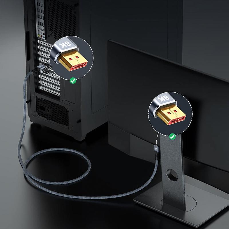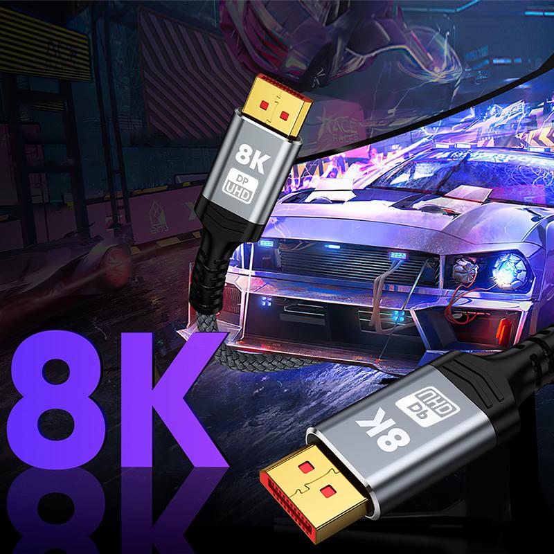 * *High Resolution Support:* This DisplayPort cable supports resolutions up to 8K (7680×4320) @60Hz, 5K (5120×2880) @60Hz, and 4K (3840×2160) @60Hz/120Hz/144Hz, delivering crystal-clear visuals for an immersive viewing experience.* *Enhanced Gaming:* Enjoy an enhanced gaming experience with higher bandwidth and support for high refresh rates. Dynamic HDR optimization enhances dark scenes and details, ideal for FPS and AAA games.* *Thoughtful Design:* Featuring a non-locking buckle design, this cable prevents damage when disconnecting monitors and graphics cards. The 30AWG copper construction and triple shielding ensure stable signal transmission without artifacts or synchronization issues.* *Wide Compatibility:* Compatible with various monitors including Odyssey G7 G9 CHG90 CRG9, BenQ, Dell, HP, Acer, iiyama, Alienware, and more. Supports DP, DP++, and DisplayPort++, ensuring compatibility with most graphics cards and monitors.*Technical Specifications** *Color:* Grey* *Weight:* 0.095 kg* *Wire Core Material:* Copper* *Wire Gauge:* 30AWG* *Outer Quilt Material:* PVC + Nylon* *Shell Material:* Aluminum Alloy* *Interface Type:* Gold Plated* *Shielding:* Aluminum Foil + Braid + Ground Wire* *Length:* 2 meters* *Resolution Support:* 8K/4K 144Hz/2K 165Hz* *Package Contents:* * 1× DisplayPort Cable