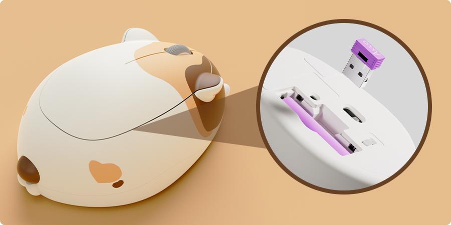 Akko Cat Theme Mouse, inspired by Calico Cat.* Plug and Play* Skin-Friendly* *_Note:_* _1 AA Battery is needed but not included._* *Ergonomically designed for a comfortable palm fit:* Enjoy faster and smoother operations while maintaining flexibility and a comfortable grip.* *Stable Connection:* Provides a powerful and reliable connection up to 33ft/10m.* *2.4G Wireless:* NO MORE messed cords, say goodbye to the cluttered desk, and make everything simple and clear!* Default 1200 DPI, ensuring a quick and responsive experience.* ABS Material* Agile Scroll Wheel* Anti-Slip Bottom