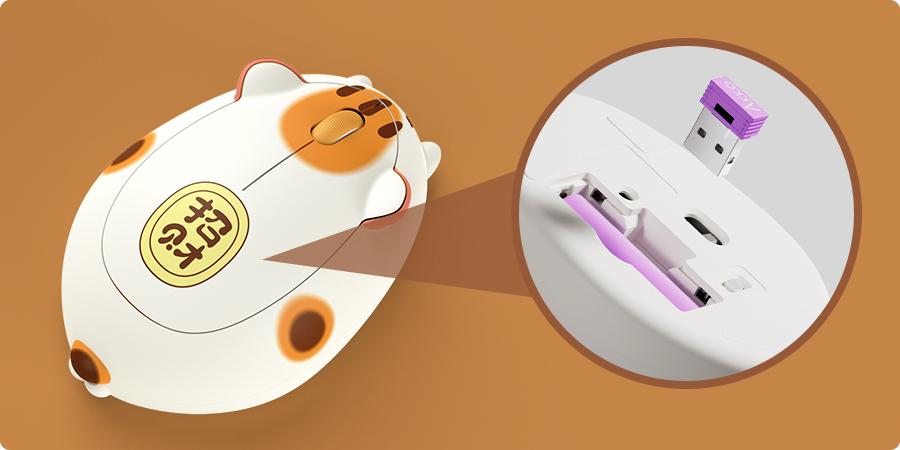 Akko Cat Theme Mouse, inspired by the Fortune Cat, which is known for waving its arm to bring good luck.* Plug and Play* Skin-Friendly* *_Note:_* _1 AA Battery is needed but not included._* *Ergonomically designed for a comfortable palm fit:* Enjoy faster and smoother operations while maintaining flexibility and a comfortable grip.* *Stable Connection:* Provides a powerful and reliable connection up to 33ft/10m.* *2.4G Wireless:* NO MORE messed cords, say goodbye to the cluttered desk, and make everything simple and clear!* Default 1200 DPI, ensuring a quick and responsive experience.* ABS Material* Agile Scroll Wheel* Anti-Slip Bottom