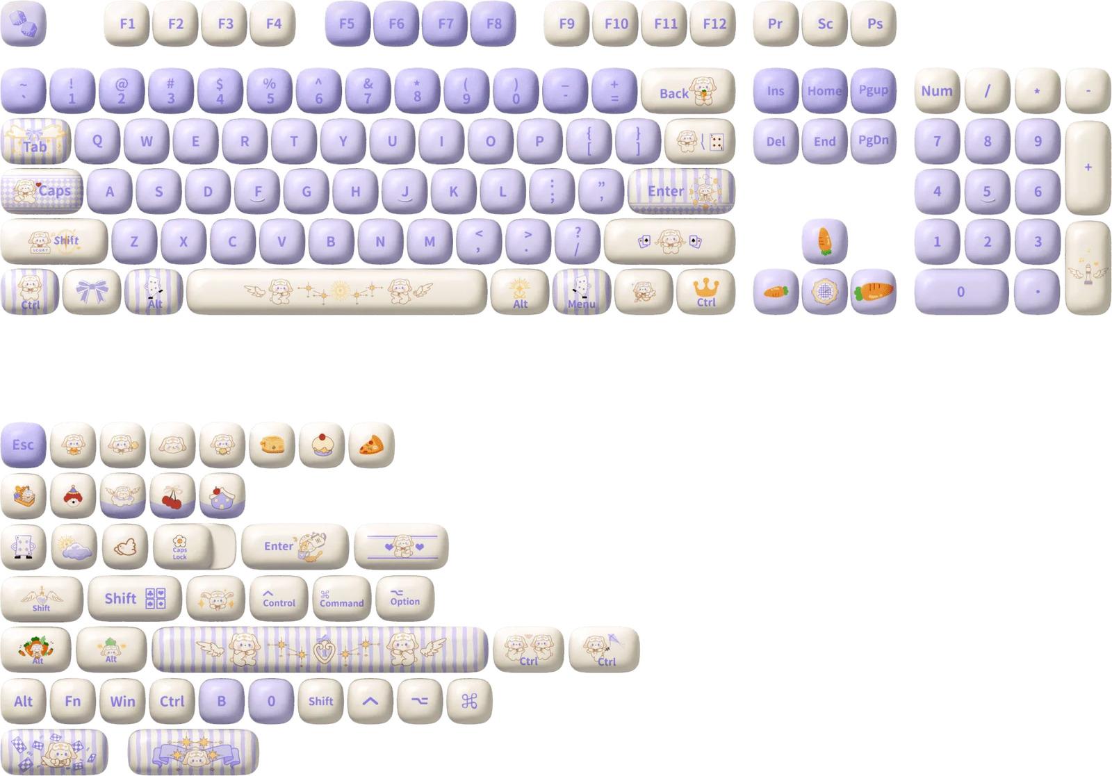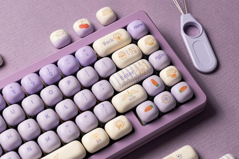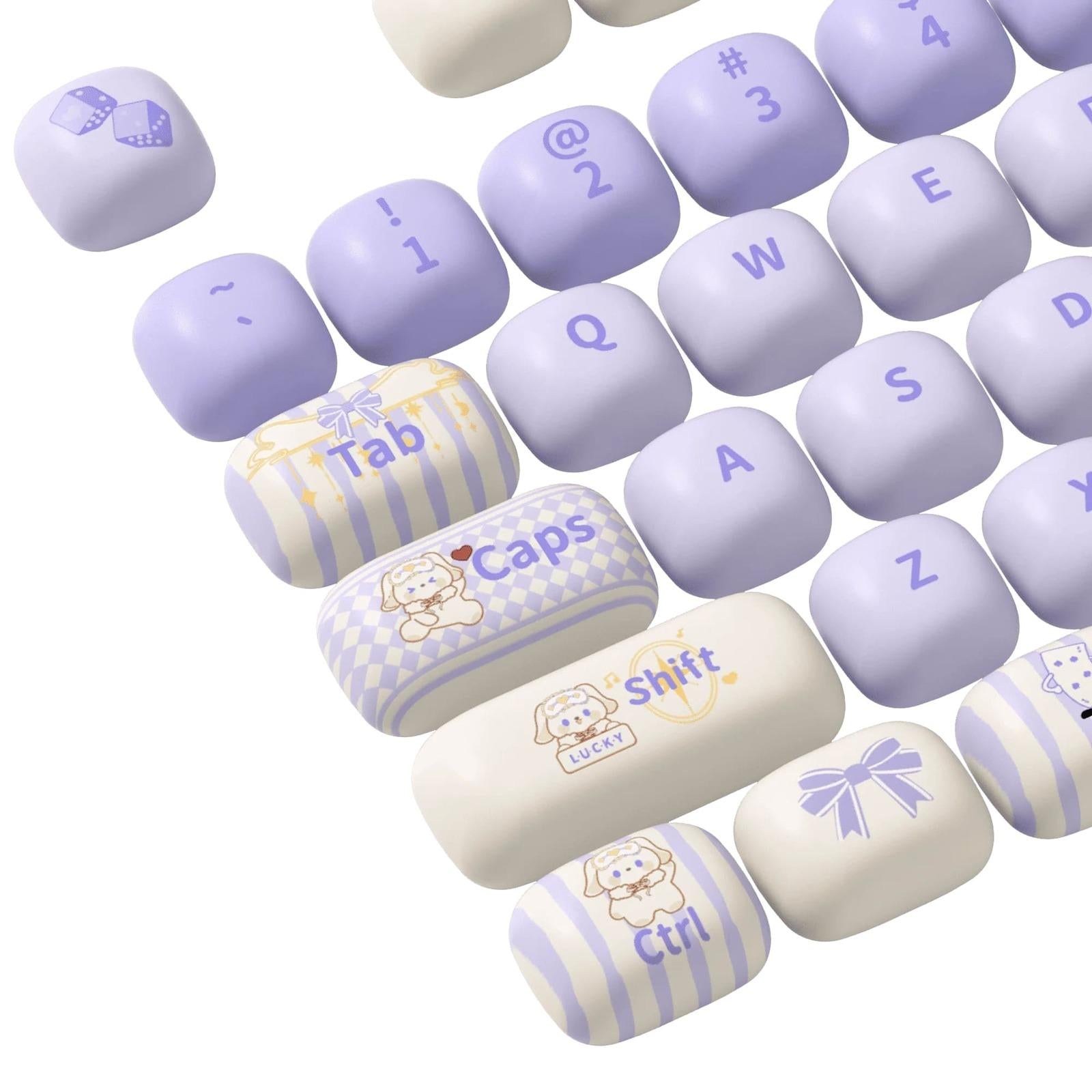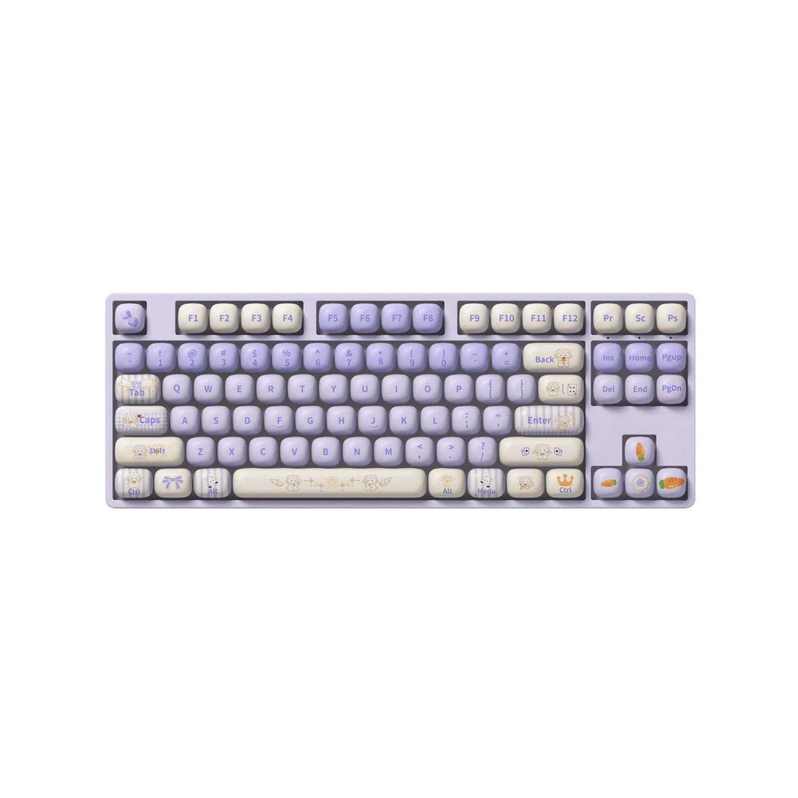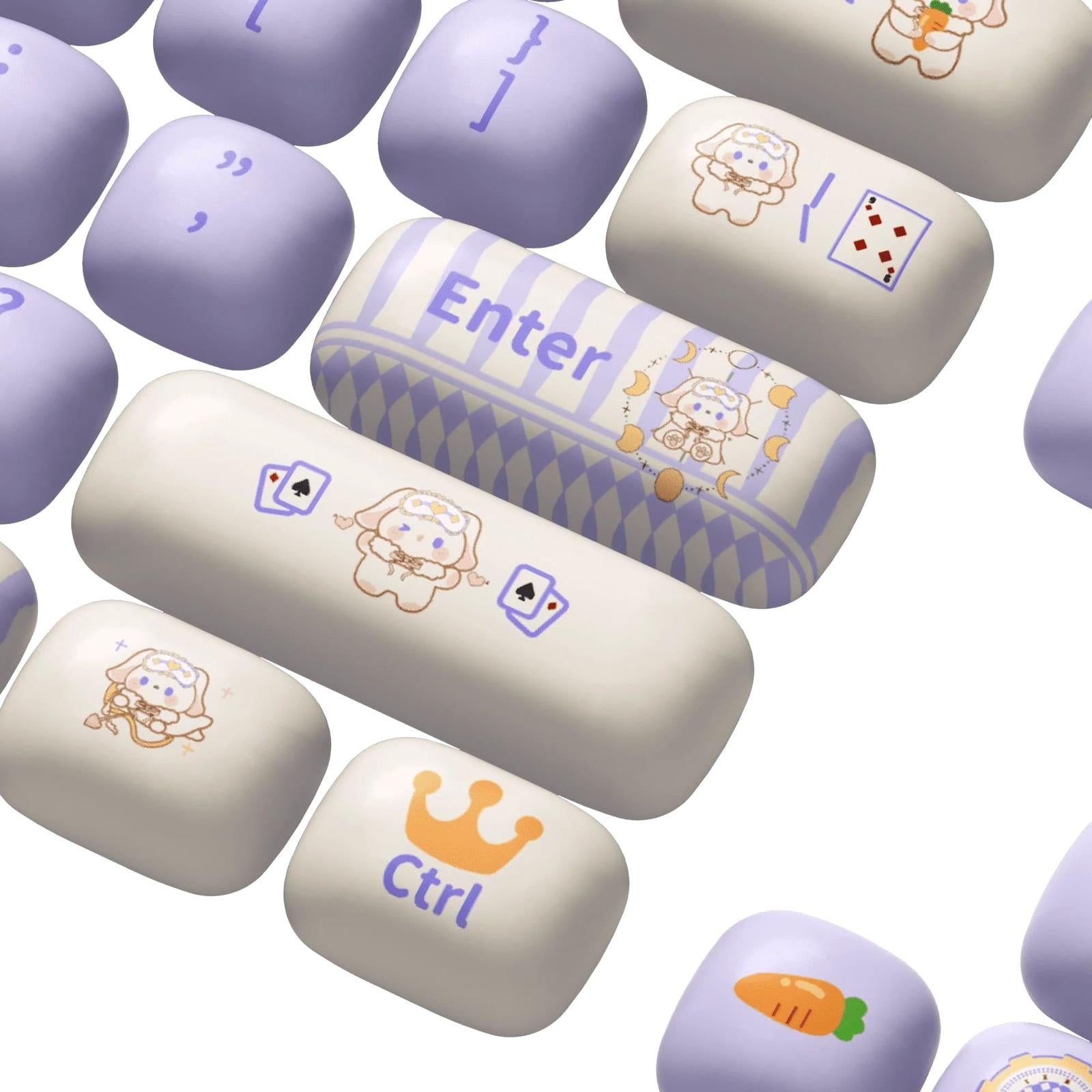 Akko Magic Lop Bunny Keycap Set features adorable bunny motifs and fairy-tale patterns, adding a touch of fantasy and cuteness.* Comes with MOG profile, a new mushroom-style design profile with unique rounded edges* PBT dye-sub keycaps with premium 5-sided dye sub technology* Compatible with major-sizes keyboard including but not limited to 60%, 64-key, 65%, TKL, 75%, 96%, 1800 compact, and full-size keyboards* *PBT Dye-Sub Keycaps:* With advanced 5-sided dye sublimation technology, the keycaps feature vibrant and colorful printing across every surface. Made from durable PBT materials, the legends will not fade easily.* *MOG Mushroom Style Profile:* Akko has introduced the MOG, a new profile with a unique mushroom-style design. This profile, with its rounded edges, offers a special and remarkable typing experience.
