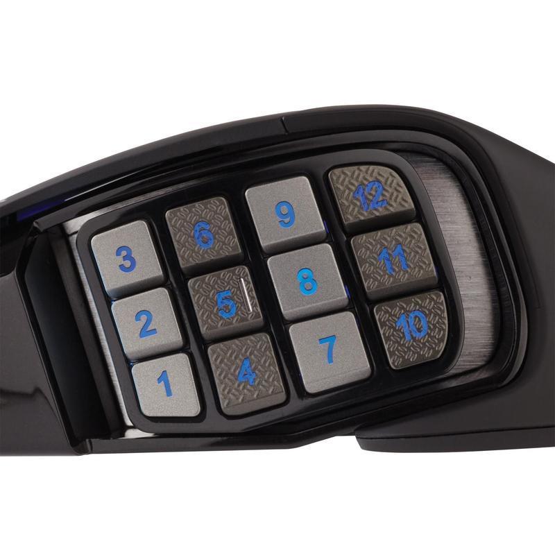 The SCIMITAR RGB ELITE levels up your gameplay with 17 fully programmable buttons for advanced macros or remaps. A patented Key Slider™ control system lets you reposition the 12 mechanical side buttons for optimal comfort whatever your grip, and a native 18,000 DPI optical sensor adjustable in 1 DPI resolution steps enables highly accurate and customizable tracking.Powerful CORSAIR iCUE software enables macro programming, dynamic four-zone RGB backlighting synchronized with your system, surface calibration, and much more. Durable construction, including 50 million click-rated Omron switches, helps it stand up to the wear-and-tear of daily gaming, and onboard profile storage lets you take the SCIMITAR RGB ELITE’s customized gaming with you anywhere.Features:* 17 Fully Programmable Buttons: Built with Ideal for performing frequent actions and executing complex macros in MMOs and MOBAs.* Patented Key Slider Control System: Reposition the 12 side buttons to comfortably fit your grip.* Native 18,000 DPI Optical Sensor: Equipped with a custom PixArt PMW3391 sensor, adjustable in 1 DPI resolution steps, for highly accurate and customizable tracking.* Ultra-Durable Construction: The SCIMITAR RGB ELITE’s 50 million click-rated Omron switches, sturdy scroll wheel, and braided cable ensure that it stands up to the wear-and-tear of extended gaming.* Comfortable Contoured Shape: Sculpted to fit the contours of your palm, regardless of hand size or grip style, with a right-side finger rest for added support.* Dynamic Four-Zone RGB Backlighting: Near limitless customization of colors and effects.* Powerful CORSAIR iCUE Software: Enables RGB lighting control, sophisticated macro programming and button remaps, sensitivity customization, surface calibration, and more.* Onboard Profile Storage: Take your macros and lighting profiles with you anywhere you go.* Surface Calibration Utility: Maximizes precision and responsiveness based on your mouse pad or surface.