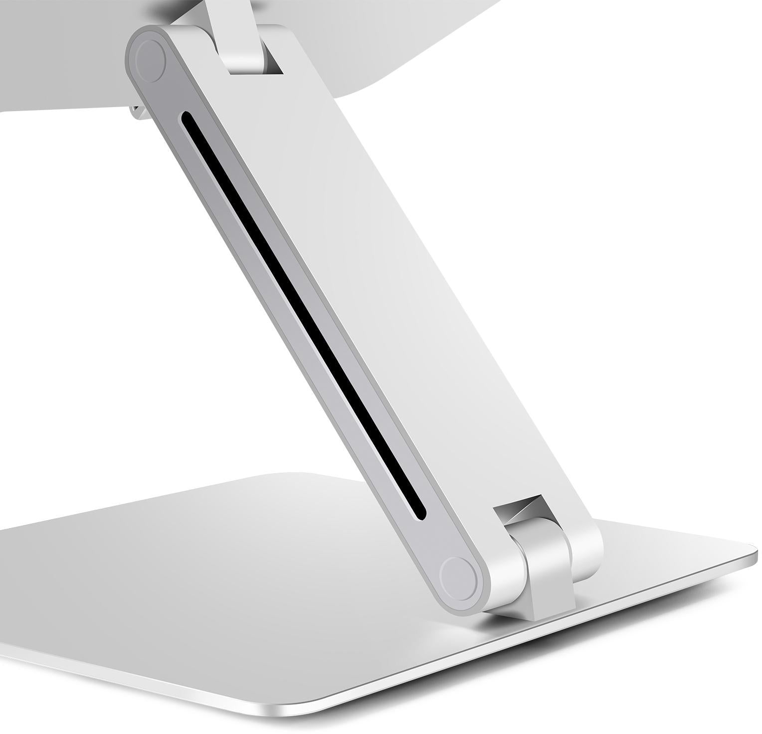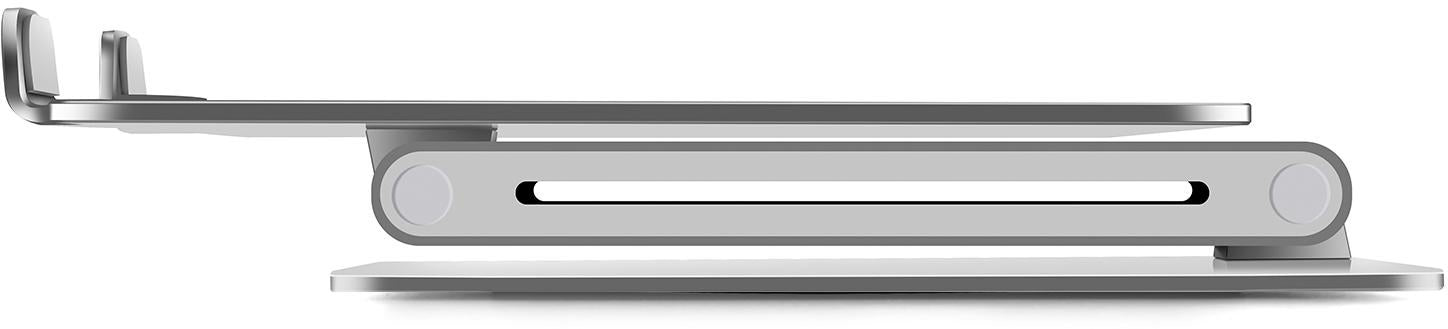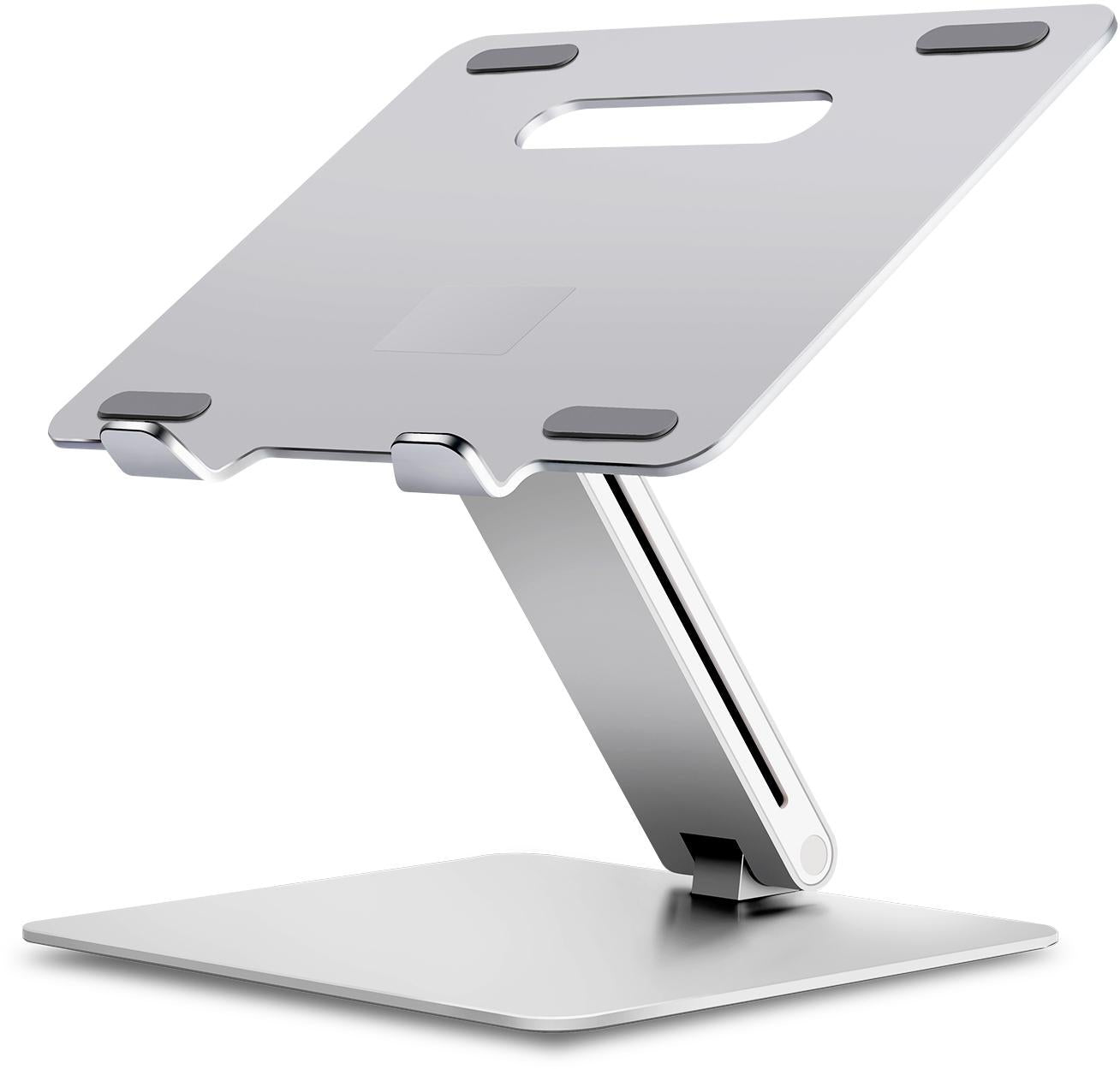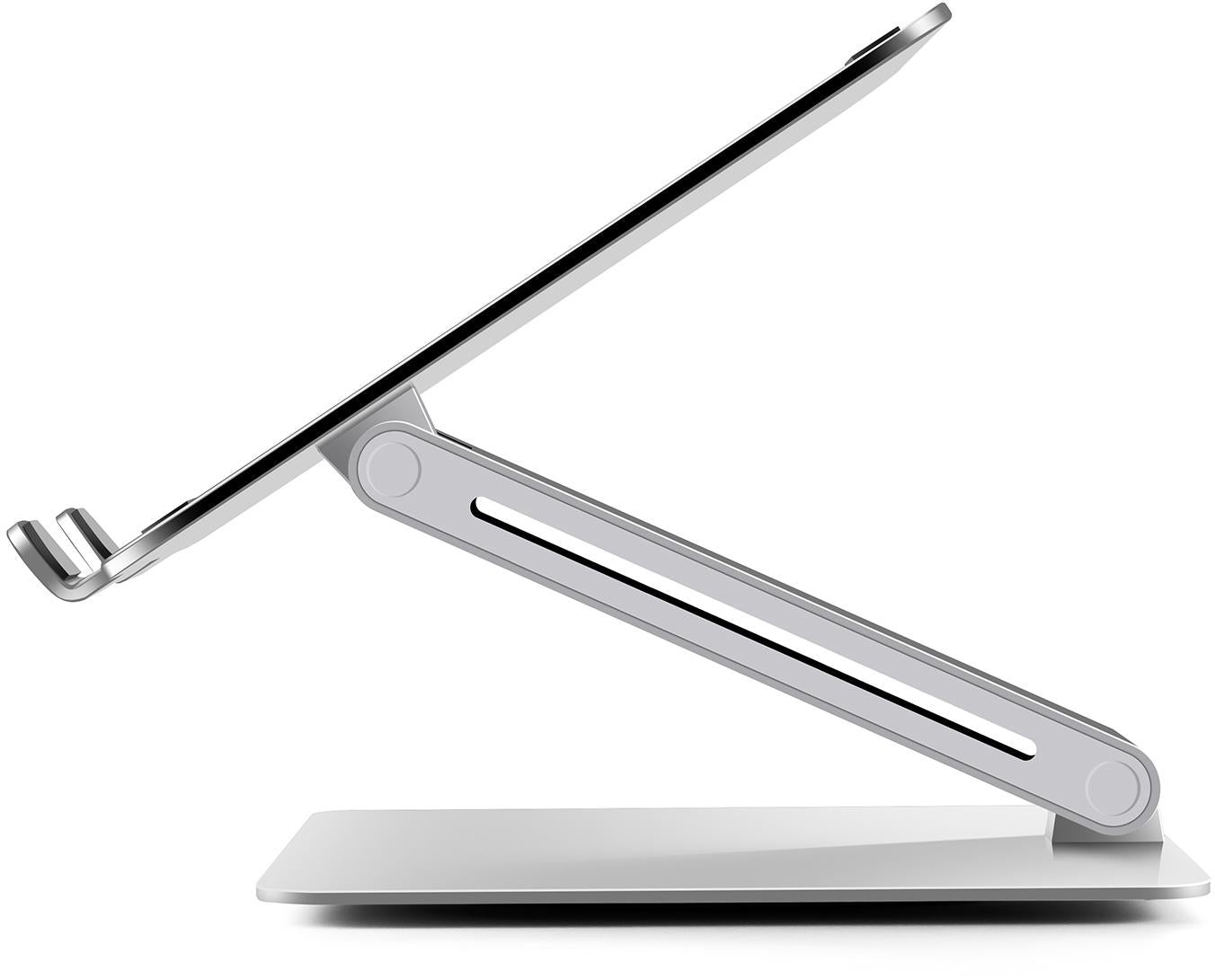With easily adjustable angle and height, this laptop stand raises your device up to a friendly ergonomic level.*FEATURES** Infinitely Adjustable* Aluminum Made* Ergonomic Design* Ventilated Construction*Wide Compatibility*This laptop stand is compatible with most laptop & tablets models and sizes from 9.7–15.6 inches.*Solid Construction*The stand is made of premium aluminum alloy. It weighs 1.45kg (3.2lbs), supports up to 8kg (17.6lbs) weight on top, with rubber pads on the top surface and front lip to hold your laptop stable in place.*Cooling function*With the hole on the top that increases air flow going toward your laptop, enable the heat to vent and keep the computer from overheating. Your laptop will also keep cool on the stand.*Ergonomic Design*The stand is adjustable in laptop height and also angle of the laptop.*SPECIFICATIONS** *Applicable:* 9.7–15.6" laptop & tablets* *Material:* Aluminum + ABS + Silicone* *Size:* 270×262×60mm (Folding)* *N.W.:* 1.45kg* *G.W.:* 1.60kg* *Angle:* 0°-270°