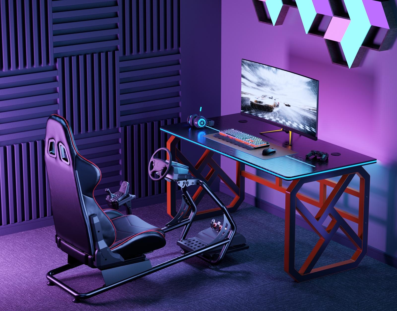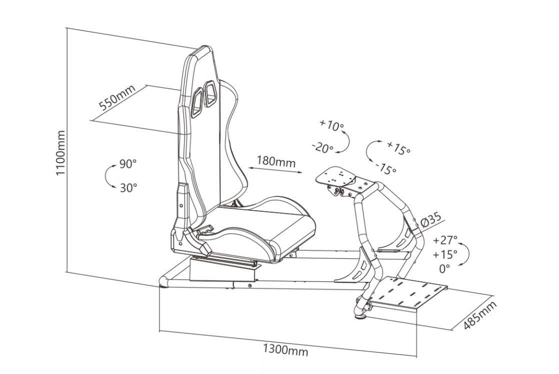 Gorilla Gaming Classic Racing Simulator CockpitGive your sim racing experience the upgrade it deserves with the Gorilla Gaming Classic Racing Simulator Cockpit.This durable steel cockpit, designed for ultimate comfort and compatibility, is compatible with all your favourite wheel and pedal brands such as Logitech, Fanatec, and Thrustmaster thanks to the pre-drilled universal mounting points.Enjoy ample legroom with the included PU Leather racing seat, capable of sliding forward/backward up to 180mm, and adjustable reclining angles between 30° to 90°, you are sure to find your optimal driving position.Plus with the included gear shifter mount that can be positioned on either side, the adjustable (Forward, Back, Up, Down) wheel mounting plate, and the adjustable (Forward/Back Tilt) pedal mounting plate, this cockpit supports a wide array of various driving styles.Start shaving valuable seconds off your lap times and take your racing simulation to the next level with the Gorilla Gaming Classic Racing Simulator Cockpit today.*Features** *Adjustable Seat with PVC Leather Cover:* Comfortable seat that allows for forward and backward movement as well as between 30° to 90° degrees of reclining adjustment.* *Adjustable Steering Wheel Plate:* Between 25°and –35° degrees of adjustment.* *Adjustable Pedal Plate:* Can be tilted at 0°, 15°, and 27° degrees.* *Pre-drilled Mounting Points:* Compatible with most wheels, gear shifters and pedals including Logitech, Fanatec, Thrustmaster, and more.* *Adjustable Gear Shifter Mount:* Can be mounted on either the left or right side, tilt adjustment between 8° and –8°.* *High Quality Powder-Coated Finish:* Stylish anti-scratch finish* *Easy Assembly**Specifications:**Dimensions:* 720×1300×1100mm(28.3"x51.2"x43.3")*Weight Capacity:* 100kg(220lbs)*Frame Type:* Fixed Frame*Frame Material:* Steel*Frame Surface Finish:* Powder Coating*Seat Type:* Reclining Seat with PVC Leather Cover*Seat Width:* 450mm(17.7")*Seat Gliding Track:* 180mm(7.1")*Seat Back Tilt Range:* 30°~90°*Steering Wheel Panel Tilt Range:* +25°~-35°*Pedal Panel Tilt Range:* 0°/15°/27°*Cable Management:* Yes*Instruction Manual Included:* Yes*Protective Feet:* Yes