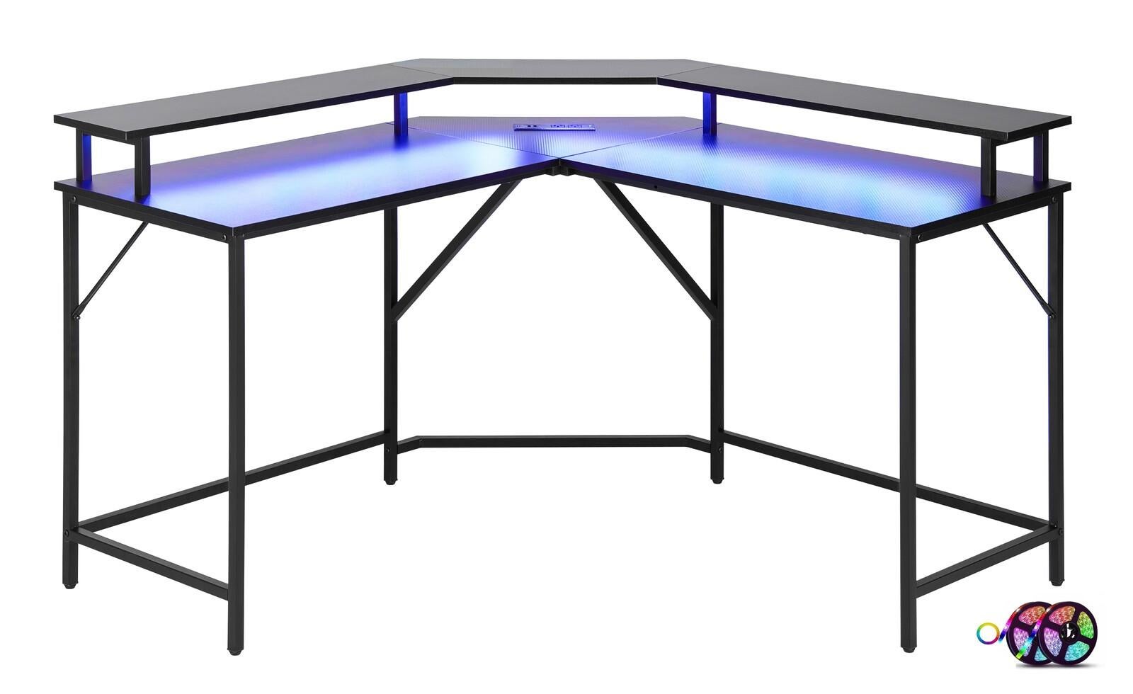 *Gorilla Gaming Renegade RGB Corner Gaming Desk with Integrated Power Outlet** Unmatched Gaming ExperienceThe Gorilla Gaming Renegade Corner Gaming Desk is designed to blend functionality with a sleek, high-tech aesthetic. This innovative desk features an integrated monitor riser to ensure optimal viewing angles and dynamic RGB lighting to set the perfect gaming atmosphere. With built-in dual USB-A ports and AC outlets, you can power your favourite peripherals and accessories without the clutter of cables dragging behind your desk.* Advanced Design and StabilityThe desk’s carbon fibre-style textured finish delivers a futuristic look, while the special levelling feet adapt to uneven surfaces, ensuring stability even during the most intense gaming sessions. Its spacious 1280mm surface provides ample room for everything you need, enhancing your gaming efficiency and comfort.* Durable and Eco-Friendly ConstructionCrafted from eco-friendly particle board and supported by a sturdy steel frame, the Gorilla Gaming Renegade offers durability and moisture resistance. Upgrade to a desk that’s as advanced as your gaming skills and experience the perfect blend of style and practicality.*Features:** *Integrated Monitor Riser:* Optimizes viewing angles for enhanced gaming immersion.* *Dynamic RGB Lighting:* Customizable lighting to create the ultimate gaming atmosphere.* *Built-In Dual USB-A Ports & AC Outlets:* Convenient power access for peripherals and accessories.* *Carbon Fibre-Style Textured Finish:* Sleek, futuristic look that complements high-tech setups.* *Adjustable Levelling Feet:* Ensures stability on uneven surfaces for uninterrupted gameplay.* *Spacious 1280mm Surface:* Provides ample space for monitors, keyboards, and other gear.* *Eco-Friendly Particle Board Construction:* Durable, moisture-resistant material with an environmentally conscious design.* *Sturdy Steel Frame:* Ensures long-lasting durability and support.*Includes 2× reels of RGB lighting strips with a remote control to customize how you want the lighting to be setup**Specifications:**Materials:* Particle Board, Melamine, Steel*Dimensions:* 1280mm x 480mm x 740mm*Weight Capacity:* 100kg*Ambient Lighting:* RGB*Carton Size:* 860mm x 540mm x 150mm*Net Weight:* 21kg---Here at Gorilla Gaming, we're massive gamers and understand how important it is that your gear never lets you down when you're gunning for that clutch victory. Whether you're looking for an extra edge over the competition or want to add some colour and style to your gaming station, Gorilla Gaming is here to satisfy your every gaming need.Plug into Gorilla Gaming now and you'll be popping headshots and victory royales like never before, shouting “GG” all day long!*WARRANTY*Mighty Ape offers 2 Year Warranty. This warranty covers all manufacturing faults or defects. It does not cover wear, tear, or damage caused by use, accident, or failure to follow care instructions. The warranty is valid for 2 Year from the date of the order and is available to the original purchaser of the product only.*All Gorilla Gaming gear is thoughtfully conceived and designed in New Zealand by our most avid gaming monkeys.*