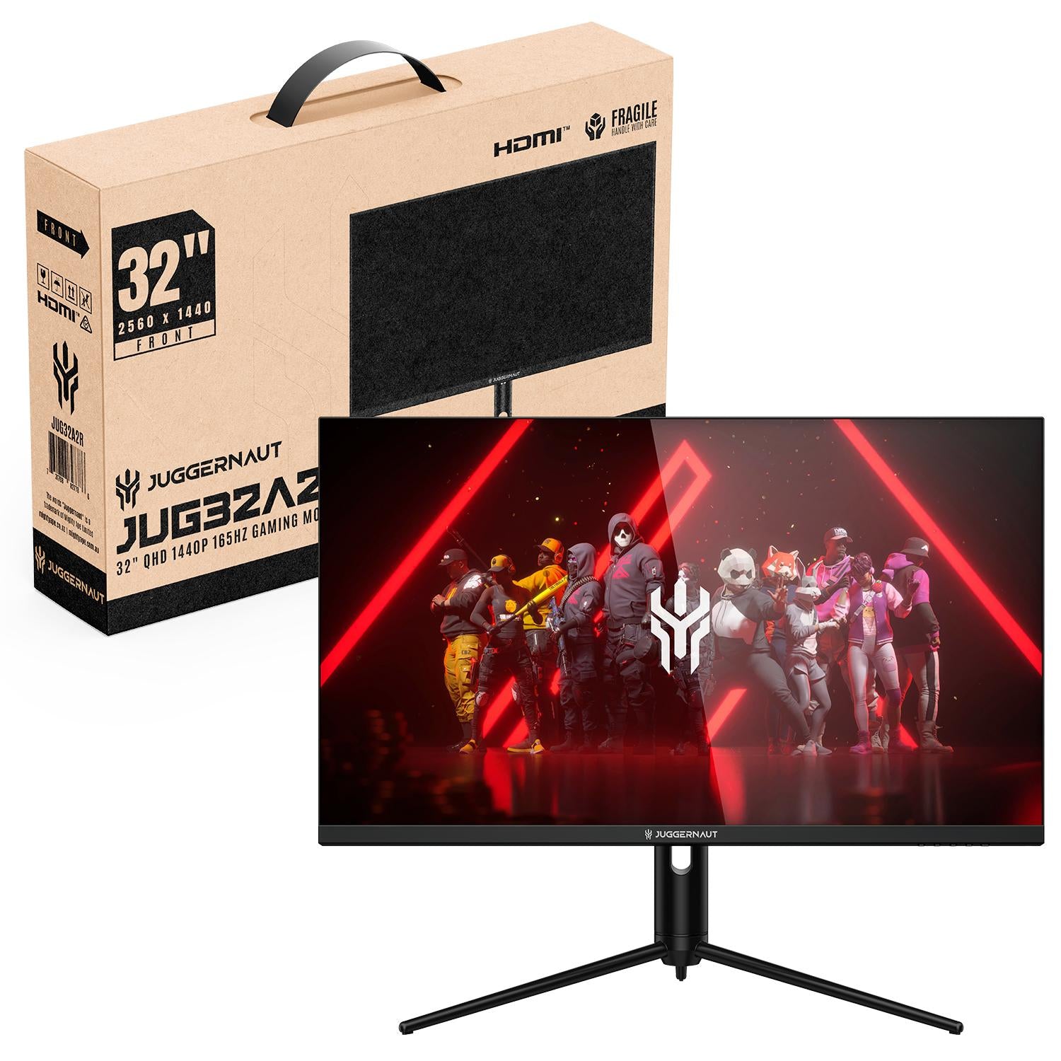 *Juggernaut 32" QHD 2K 165Hz IPS Gaming Monitor (2560 × 1440)*The Juggernaut 32" QHD 1440p 165Hz Gaming Monitor – a powerhouse display designed to elevate your gaming experience to new heights. Immerse yourself in stunning visuals on a spacious 32-inch flat IPS panel with a crystal-clear 2560 × 1440 resolution, offering a perfect balance between detail and performance.This Juggernaut monitor boasts an impressive 165Hz refresh rate and a swift 1ms response time, ensuring fluid motion and responsiveness for a competitive edge. Dive into the action with vibrant colors and sharp contrast, thanks to its HDR Ready capability and 1000:1 contrast ratio.Connectivity is a breeze with either HDMI 2.0 or DP 1.4 output options, plus a 3.5mm audio output jack. The 16:9 aspect ratio perfectly complements the monitor's design, providing an ideal canvas for your gaming adventures.For added customization and flexibility, the Juggernaut features a 75mm x 75mm VESA mount, allowing you to position your monitor exactly where you want it. The back-facing ambient lighting strip not only adds a touch of style to your gaming environment but also creates an ambient glow for an immersive gaming atmosphere.Unleash the power of the Juggernaut 32" QHD 1440p 165Hz Gaming Monitor and take your gaming to the next level with its cutting-edge features and sleek design.*Features:** *Immersive Visuals:* 32" flat IPS panel with 2560 × 1440 resolution and HDR Ready capability.* *Ultra-Fast Performance:* 165Hz refresh rate and 1ms response time for smooth, responsive gaming.* *Vivid Colors and Contrast:* 300nit brightness and 1000:1 contrast ratio for stunning visuals.* *Versatile Connectivity:* 2× HDMI 2.0 ports, 2× DisplayPort 1.4 ports, and 1× audio output.* *Customizable Setup:* 75mm x 75mm VESA mount for flexible positioning.* *Ambient Lighting:* Back-facing lighting strip adds style and enhances gaming atmosphere.*Whats in the box?** 1× Juggernaut 32" Gaming Monitor* 1× DP1.4 Cable (1.5m Length)* 1× Power Supply* 1× Height Adjustable Stand*Technical Specifications**Panel Size (Diagonal):* 32 Inches*Panel Type:* IPS*Aspect Ratio:* 16:9*Resolution:* 2560 × 1440*Refresh Rate:* ~165Hz (Via DP 1.4 Connection) – HDMI 2.0 Maximum Refresh Rate 120Hz*FreeSync:* Yes (48 – 144Hz via HDMI, 48 – 165Hz via DisplayPort)*HDR Support:* HDR Ready*Panel Brightness:* 300NIT*Panel Bit Depth:* 8-Bit*Panel Response Time (OD):* 1ms*HDMI 2.0 Ports:* 2*DisplayPort 1.4 Ports:* 2*3.5mm Audio Out:* Yes*Stand Type:* HAS (Height Adjustable Stand)*Tilt Angle:* –5 Degrees ~ 20 Degrees*Swivel Angle:* +/- 30 Degrees*Pivot Angle:* +/- 90 Degrees*Height Adjustment:* 120mm +/- 5mm*Power Consumption:* 35W ~ 48W*Dimensions (With Stand):* 72.6cm x 59.9cm x 28.6cm*Box Dimensions:* 973mm x 204mm x 538mm*Gross Weight (kgs):* 9.8kg---_Elevate your gaming to the next level with the primordial power of Juggernaut. Forged in fire and chaos for gamers in search of the best equipment for an extra edge over the competition with no sacrifices.__Juggernaut embraces your gaming needs as you decimate endless hordes of your enemies with the odds ever in your favour. Crush, control, capture and conquer the digital world. Begin your gaming odyssey and make a statement on the battlefield, and in your gaming den, like the all-powerful legend you are.__Leave your mark and annihilate the competition with Juggernaut. The game has changed. Are you ready?_