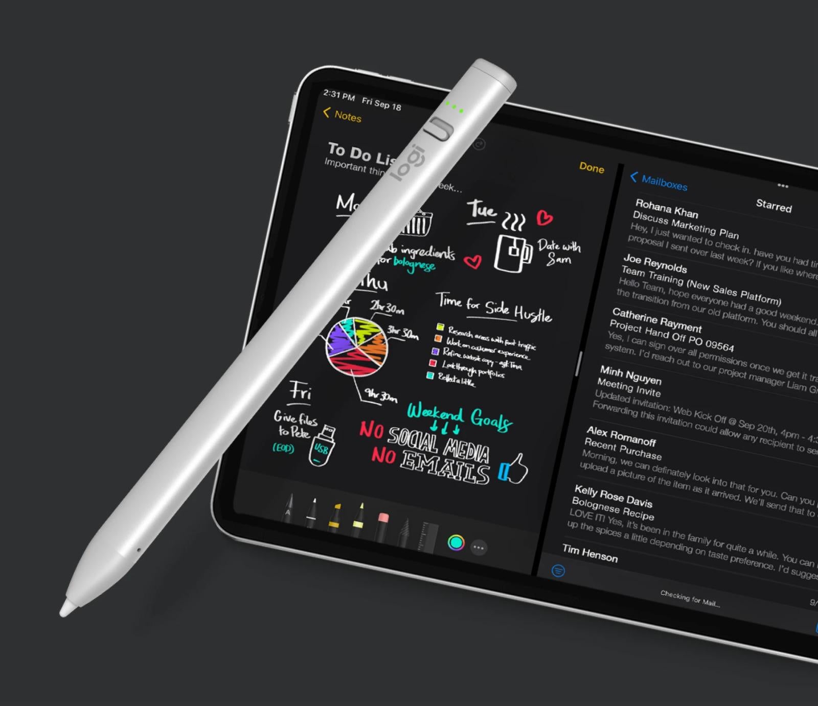 *DISCOVER WHAT’S POSSIBLE*Sketch, write and annotate with Logitech Crayon for iPad, powered by Apple Pencil technology.* *Add Flair to your Flow:* Logitech Crayon is a versatile, pixel-precise digital pencil for iPad (all models 2018 and later) that seamlessly boosts your productivity and lets you add a touch of flair to any task or project. Logitech Crayon is powered by Apple Pencil technology so you can start creating, collaborating, and learning on countless apps instantly. * *ANNOTATE:* Easily annotate PDFs and other documents * *TAKING NOTES:* Comfortably take notes in your own handwriting * *SKETCHING:* Sketch diagrams, prototypes, and more * *MAKING LISTS:* Write up and check off vital To-Do lists* *Powered by APPLE PENCIL Technology:* Uses Apple Pencil technology so you can write and draw naturally without fear of missing a single line or detail thanks to pixel-perfect precision and imperceptible lag.* *JUST TURN ON AND WRITE:* Simply slide the off/on button down and start writing right away — it’s that easy. Logitech Crayon connects to iPad instantly with no complex Bluetooth pairing or other delays.* *THE PERFECT LINE EVERY TIME:* Need a thicker or thinner line? Just tilt. Logitech Crayon has a smart tip which dynamically adjusts line weight as you naturally write—just like a regular pencil.* *WELCOME TO USB-C:* Say goodbye to cable confusion. Logitech Crayon uses the same USB-C cable as iPad Pro, iPad Air, and the NEW iPad (10th generation) for quick, reliable charging.* *PALM REJECTION TECHNOLOGY:* Go right ahead and rest your palm on the screen while you write—iPad supports palm rejection for natural hand placement. Now you can stop worrying about your hands and focus on writing, sketching, and, of course, doodling.* *BATTERY LIFE THAT LASTS:* Logitech Crayon gives up to 7 hours of writing time on a single charge and shuts off automatically after 30 minutes of idle time to save battery. If you’re low, no worries—a 2 min charging boost provides 30 min of writing time.* *GREEN MEANS GO:* Battery indicator lights tell you when your power is running low so you’re never caught off guard right when you need to make an important doodle.* *SHAPED TO STAY PUT:* The unique design of Logitech Crayon isn’t just for show—it’s built for durability. The flat shape stays exactly where you leave it and prevents it from rolling off desks or getting lost underneath shelves.* *SOLID CONSTRUCTION:* With no small or detachable pieces, Logitech Crayon has a unibody design that’s built to last. You can even feel confident handing it off to your kid for a quick doodle.* *JUST FLIP THE SWITCH:* Always know whether your device is active or not – just slide the physical on/off button down and start writing instantly.* *DURABLE DESIGN:* Drop it, knock it, or toss in a bag—Logitech Crayon can take it. With 4-ft drop protection, Crayon can hold up to the busiest of lifestyles, and clumsiest of kids (or adults).* *WORKS WITH HUNDREDS OF APPS:* Use Crayon to learn a new language, sketch, design, or create with apps that are compatible with Apple Pencil. * Procreate * Adobe Lightroom * Notability * Evernote * Tayasui Sketches * Pixel Mator * Writing Wizard * Word * Power Point * Excel * Nebo® * Goodnotes 4 * Plus Hundreds More Apps…*SPECIFICATIONS** *Dimensions:* * *Height:* 159 mm * *Width:* 12 mm * *Depth:* 8 mm * *Weight:* 20 g* *Technical Specifications:* * *Protection:* 4 ft (1.2 m) drop * *Power and Connectivity:* * Lithium battery * Up to 7 hours of active writing time * To turn on, slide the button down towards tip * After 5 seconds, lights turn off * When idle, the LED lights will turn on briefly to show battery life when it detects movement, transitioning from idle to active writing mode * *Battery life indicator:* * Battery > 66%, 3 green LED * Battery > 33%, 2 green LED * Battery >15%, 1 green LED * Battery <15%, 1 red blinking LED * Charge via iPad USB-C cable * After 5 minutes of inactivity, Crayon will switch to idle mode * To turn off, slide button up towards charging port * *To charge:* * Charge to 33%, 3 LED blink continuously * Charge to 66%, 1 LED is solid green, 2 LED blink continuously * Charge to 99%, 2 LED are solid green, 1 LED blink * Charge to 100%, 3 solid green LED * *Tip:* * Replaceable (purchased separately) * Tilt sensitivity for dynamic line weight * Palm rejection technology ignores stray touches * *Materials:* * *Tube:* Aluminum * *Tip cover:* PC+ABS* *In the Box:* * Logitech Crayon * Quick Start Guide* *Compatible devices:* * *iPad Pro 12.9-inch:* * *iPad Pro 12.9-inch (6th gen):* * *Model:* A2436, A2764, A2437, A2766 * *iPad Pro 12.9-inch (5th Gen):* * *Model:* A2378, A2461, A2379, A2462 * *iPad Pro 12.9-inch (4th gen):* * *Model:* A2229, A2069, A2232, A2233 * *iPad Pro 12.9-inch (3rd gen):* * *Model:* A1876, A2014, A1895, A1983 * *iPad Pro 11-inch:* * *iPad Pro 11-inch (4th gen):* * *Model:* A2759, A2435, A2761, A2762 * *iPad Pro 11-inch (3rd Gen):* * *Model:* A2377, A2459, A2301, A2460 * *iPad Pro 11-inch (2nd gen):* * *Model:* A2228, A2068, A2230, A2231 * *iPad Pro 11-inch (1st gen):* * *Model:* A1980, A2013, A1934, A1979 * *iPad:* * *iPad (10th gen):* * *Model:* A2696, A2757, A2777 * *iPad (9th gen):* * *Model:* A2602, A2603, A2604, A2605 * *iPad (8th gen):* * *Model:* A2270, A2428, A2429, A2430 * *iPad (7th gen):* * *Model:* A2197, A2200, A2198 * *iPad (6th Gen):* * *Model:* A1893, A1954 * *iPad Air:* * *iPad Air (5th gen):* * *Model:* A2588, A2589, A2591 * *iPad Air (4th gen):* * *Model:* A2316, A2324, A2325, A2072 * *iPad Air (3rd Gen):* * *Model:* A2152, A2123, A2153, A2154 * *iPad mini:* * *iPad mini (6th gen):* * *Model:* A2567, A2568, A2569 * *iPad mini® (5th gen):* * *Model:* A2133, A2124, A2126, A2125 * *All iPad models must be updated to iOS 12.2 and above*