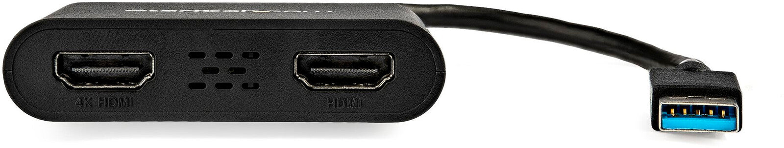 This USB to HDMI® Dual Monitor adapter lets you add two independent HDMIdisplays to your computer using a single USB 3.0 port. One of the HDMI portscan output resolutions up to 4K, while the other can output resolutions up to1920 × 1200.