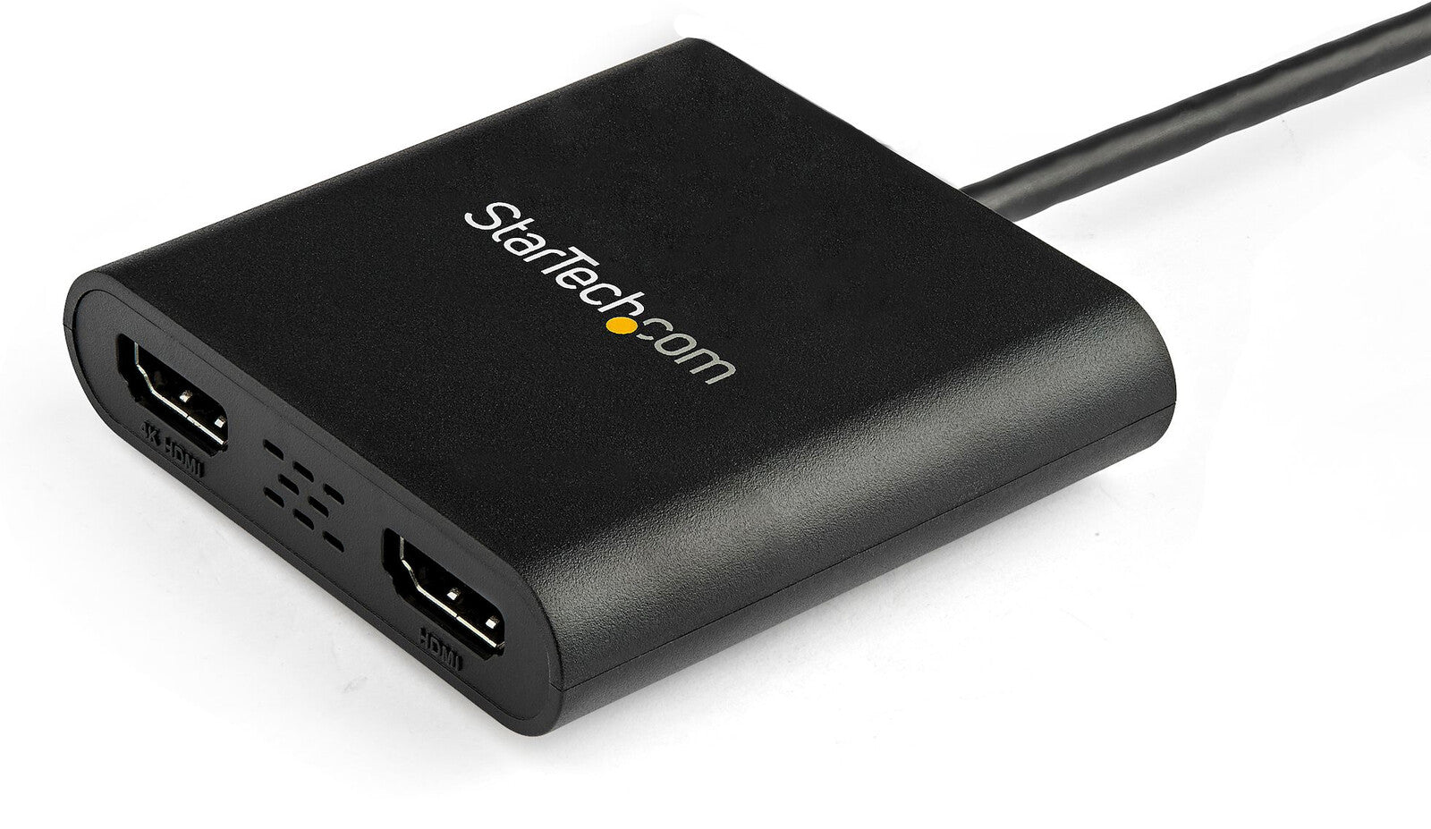 - Increases your productivity by providing multiple displays:Adding more displays to your workstation can be difficult, especially if yourcomputer does not support MST or offer many external video ports. This USB todual HDMI adapter features two video outputs, boosting your productivity bygiving you more screen space to work from. With multiple displays you have thefreedom to access multiple applications at the same time and reference materialon one display while you compose on the other.