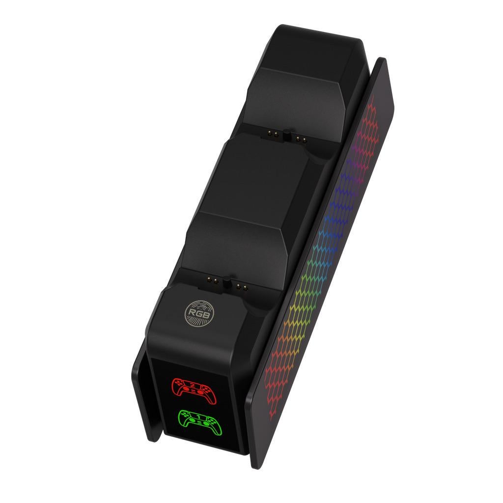 Playmax PS5 Dual Controller ChargerFeatures:* Compatible: supports PS5 dualsense and PS5 dualsense Edge controllers* Fast Charge: Fully changes controllers in less than 3 hours* RGB Light: features vibrant 9 mode ambient lighting with n optional light off mode* Safe: overvoltage, overload, overtemperature and short circuit protectionSet includes:1× dual charger1× usb charging cablePlease note: Controllers are not included