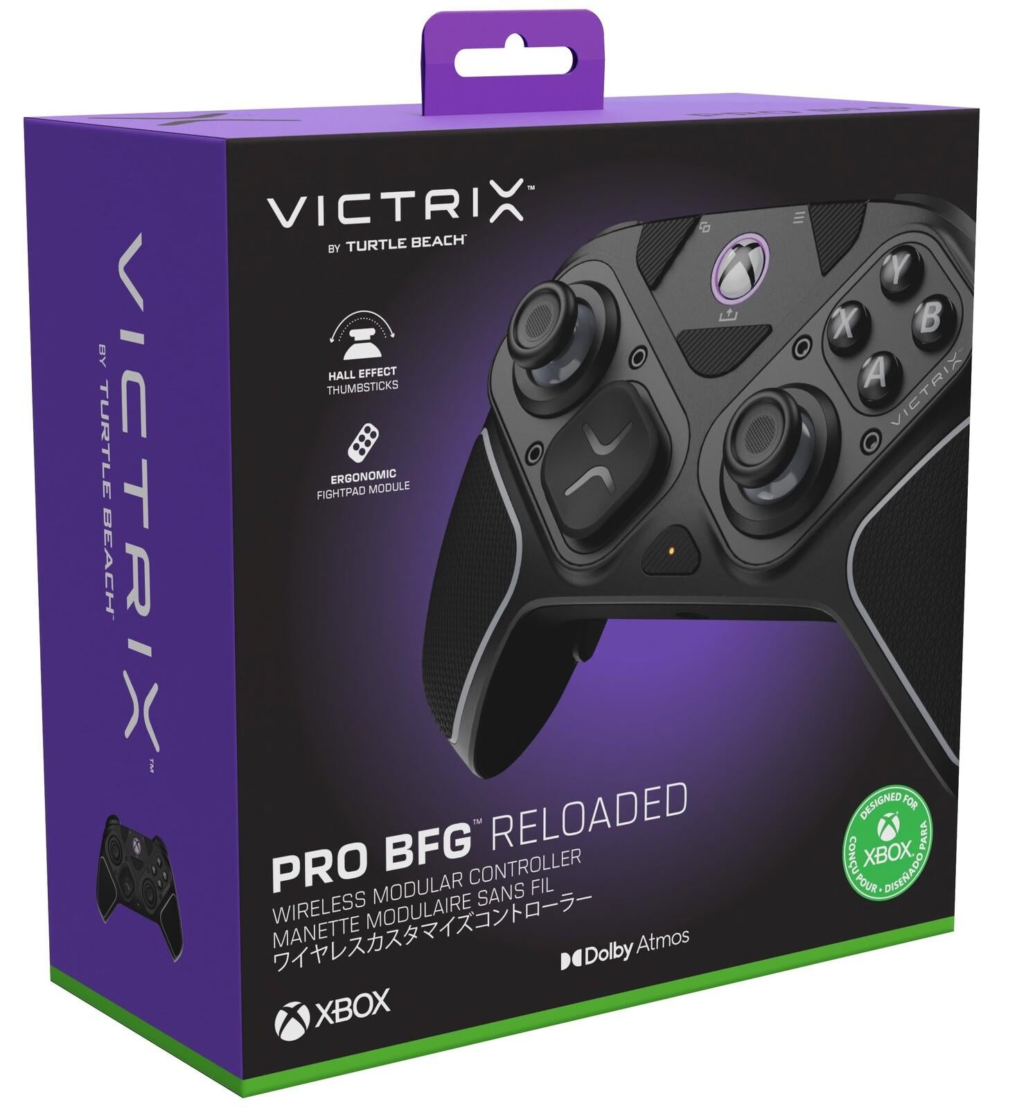 The Victrix Pro BFG Reloaded is the next evolution of the award-winning modular Pro BFG wireless controller, designed for elite gamers who demand precision, customization, and versatility on Xbox and PC.At its core are customizable modules with built-in Hall-Effect technology, ensuring drift-free precision for consistent and reliable input accuracy. With three modules and eleven interchangeable components you can customize your controller for optimal comfort and performance. Modularity meets precision with four mappable back buttons, dual rumble motors, impulse triggers, 5-stop Clutch Triggers with Hall-Effect mode, and a lifetime subscription to Dolby Atmos spatial surround sound. For the fighting game community, the ergonomically enhanced 6-button Fightpad module with Kailh microswitches delivers tournament-level accuracy for flawless combos.Officially licensed by Xbox, the Pro BFG Reloaded is built with pro-level customization and tournament-grade performance, making it the ultimate weapon for gamers!Features:* 3 customizable modules with built-in Hall-Effect technology* Ergonomically enhanced 6-button Fightpad module with Kailh microswitches* 5-stop Hall-Effect Clutch Triggers with Hair-Trigger mode* 4 mappable quick-action buttons* 11 interchangeable components* Built-in 3.5mm audio jack with lifetime subscription to Dolby Atmos* Wired and Wireless connectivity (up to 20-hour rechargeable battery)* Officially licensed by Xbox* Free Victrix Control Hub companion app on Xbox and PC* Includes carrying case and module tool
