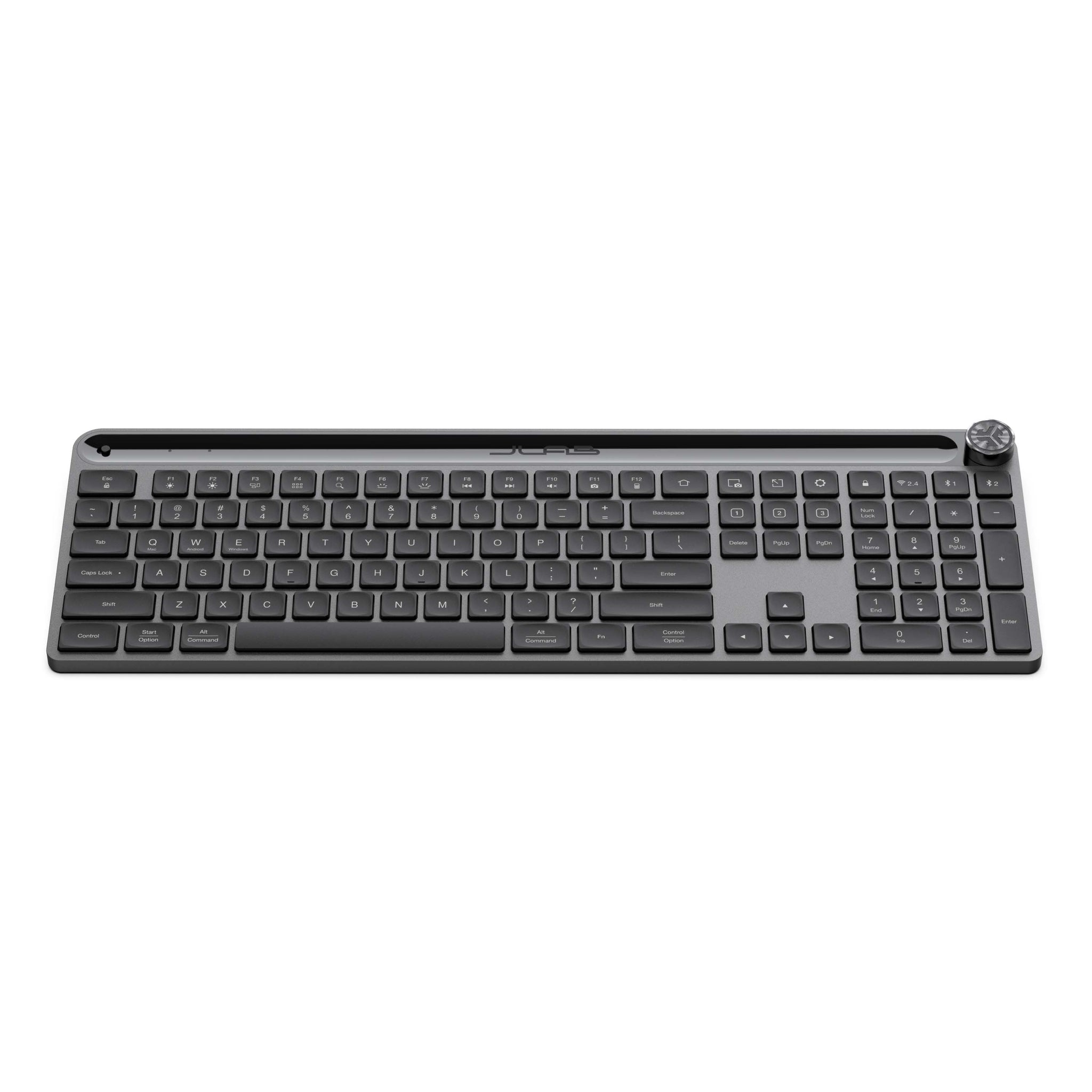 Revel in the premium typing experience offered by the JLab Epic Wireless Keyboard. Made for both productivity and style, this peripheral boasts a full-depth illuminated design with a number pad, media knob, and shortcut keys. It also features a high-quality metal base to deliver superb durability. Plus, it works with the JLab Work App, so you can easily personalise settings to your needs.*Key Features**Work in Style*: Bring modern elegance to your workspace with the JLab Epic Wireless Keyboard. A perfect upgrade to your computer setup, this peripheral packs comprehensive controls in a premium-quality metal base.*Seamless Commands*: Streamline your workflow, as this JLab Keyboard features a full-sized layout with a number pad, media knob, and shortcut keys. It also flaunts illuminated keys, so you can comfortably work in any lighting condition.*Customisation Made Easy*: The Epic Keyboard works in tandem with the JLab Work App, allowing you to easily program specific hotkeys to suit your needs. In addition, it enables you to save three user profiles for easy switching between work and play.*Wireless Freedom*: Enjoy stable wireless connections via Bluetooth or USB Dongle. You can also easily toggle between three devices to provide total ease.*Always Ready*: Get more tasks done without frequent charging since this JLab Wireless Keyboard utilises a rechargeable battery that can last for up to 2 years*.*Wide Compatibility*: JLab Epic Wireless Keyboard works with a variety of devices running on Windows, iOS/MAC, Android, and Chrome OS interfaces.*Battery life will vary based on user and computing conditions.