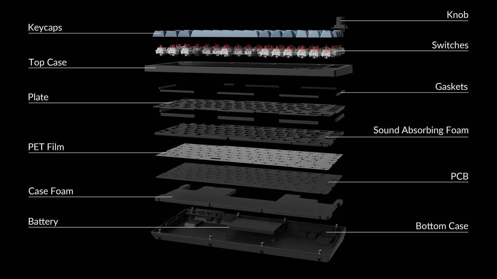 The V1 Max is a fully customizable mechanical keyboard, offering both 2.4 GHz wireless and Bluetooth 5.1 connectivity. Its compact 75% layout, gasket mount design, sound absorbing foam, double-shot PBT keycaps, and more take your typing experience to a new level, delivering heightened levels of comfort and productivity.*Features**All-around customizable keyboard:* To build a fully customizable keyboard, we designed every component to be easily assembled so you can customize and adjust any or every parts the way you want.*2.4 GHz & Bluetooth Connection:* Experience peak gaming performance on the fly with the 2.4 GHz wireless connection boasting a rapid 1000 Hz polling rate. For seamless multitasking across your computer, phone, and tablet, you can effortlessly connect the V1 Max via Bluetooth 5.1 to three devices.*An Epic Core Inside The Keyboard:* A powerful ARM architecture MCU equipped with 256K Flash will provide more flexibility for developers. The polling rate is 1000 Hz right out of the box, which makes the latency hardly noticeable even in competitive games.*OSA Profile Double-shot PBT Keycaps:* These double-shot PBT keycaps have a similar height to the OEM profile and has an SA-like shape. We named it the OSA (OEM spherical angled) keycap. The PBT keycaps will provide excellent oil resistance, enhance the type feel, and prevent the legends from fading out.*Switch Layouts Between macOS & Windows:* Built with the Mac users’ experience in mind while still retaining compatibility for Windows devices, the Keychron V1 Max comes with a system toggle and an additional set of customized keycaps for both Windows and macOS systems. You can now save two different layouts on the keyboard, one for each system.*Gasket Mount Design:* By adopting a gasket mount design along with a PC (Polycarbonate) plate, the V1 Max reduces acoustic resonance, delivering a softer and quieter typing experience with enhanced flexibility.*Program with QMK & VIA.:* With full QMK and VIA support, you can easily program and remap each key on the keyboard. The open-source firmware means endless possibilities for keyboard layouts, shortcuts, backlight effects, even the knob, and more.*Anytime, Anywhere Access:* Keychron Launcher is a web page configurator that you can use in the office, school, lab, or government department—anywhere with internet access. Configure your keyboard online anytime without the need to download or install files. No hassle, no trouble.*Compatible with All Platforms:* As a web-based tool, Keychron Launcher supports all operating systems. Personalize and program your keyboard on Windows, macOS, Linux, and more. Enjoy unprecedented flexibility with compatibility across Chrome, Edge, and Opera browser.*Safe Inputs:* You type your password, contact, home address, and other sensitive privacy information on keyboards every day. Our keyboards use QMK open-source firmware, allowing the community to review the codes for safety and ensuring no hidden features, so you have complete control over your input security.*Always Up to Date:* Keychron Launcher is continuously updated, ensuring you always have access to the lastest version. There's no need to download updates or wait for installations.*Hot-swappable:* The hot-swappable sockets are mounted on the PCB, so you can install or change the switches without soldering. The PCB supports both 3-pin and 5-pin MX mechanical switches.*South-facing RGB LED Lights:* The south-facing RGB LED is designed to better illuminate the keyboard backlight from the typist’s angle with the premium non-shine-through PBT keycaps installed. The south-facing RGB is also free from interference when the users install OEM or Cherry-profile alternative keycaps on the keyboard.*Gateron Jupiter Switch:* Our exclusive Gateron Jupiter mechanical switch (for the Fully Assembled version only) comes with a 3-pin design, its pre-lubed with a reliable Gateron quality standard with up to 80 million keystrokes lifespan. While their unique LED diffuser design offers high RGB backlight transmittance and softer backlight effect.The banana switch provides an early tactile bump at the top with a uniquely smooth experience like those Panda switches on the market.*Screw-In PCB Stabilizers:* Even small part matters for your fingertip feel. We’ve integrated the PCB-mounted screw-in stabilizers for a smoother typing experience with less wobbliness on the big keys such as space bar, shift, enter, and delete. The Keychron V1 Max also supports third-party screw-in PCB stabilizers.*What's in the box**Keyboard** 1× Fully Assembled Keyboard Including* 1× Case* 1× PCB* 1× PC Plate* 1× Sound Absorbing Foam* 4 Sets x Stabilizers* 1 Set x Keycaps (PBT Double-shot)* 1 Set x Switches*Cable** 1× Type-C to Type-C Cable* 1× Type-A to Type-C Adapter* 1× Extension Adapter for Receiver*Receiver** 1× Type-A 2.4GHz Receiver* 1× Type-C 2.4GHz Receiver*Tools** 1× Keycap & Switch Puller* 1× Screwdriver* 1× Hex Key*Technical Specifications** *Dimension:* 148.7 × 328.5mm* *Front Height:* 21.5 mm (without keycaps)* *Back Height:* 29.4 mm (without keycaps)* *Feet Height:* 2 mm* *Angle:* 3.5° / 7.1° / 9.5°* *Weight:* 770 g ± 10 g (Fully Assembled Version)* *Body Material:* ABS Plastic* *Plate Material:* PC* *Polling Rate:* 1000 Hz (2.4 GHz and wired) / 90 Hz (Bluetooth mode)* *Mount Style:* Gasket Mount Design* *N-Key Rollover (NKRO):* Yes for both wireless and wired modes* *Hot-swappable:* Yes. Compatible with most of the 3 pin & 5 pin MX mechanical switches such as Gateron, Cherry MX, Kailh, etc.* *Keycaps (Fully Assembled Version):* Double-shot PBT keycaps, not shine-through, OSA Profile (OEM height, SA shape)* *MCU:* ARM Cortex-M4 32-bit STM32F402 (256KB Flash)* *Switches:* Gateron Jupiter (Fully Assembled Version)* *Backlight:* South-facing RGB LED* *Stabilizer:* Screw-in PCB stabs* *Operating Environment:* –10℃ to 50℃*Connectivity and Power** *Bluetooth Device Name:* Keychron V1 Max* *Battery:*
