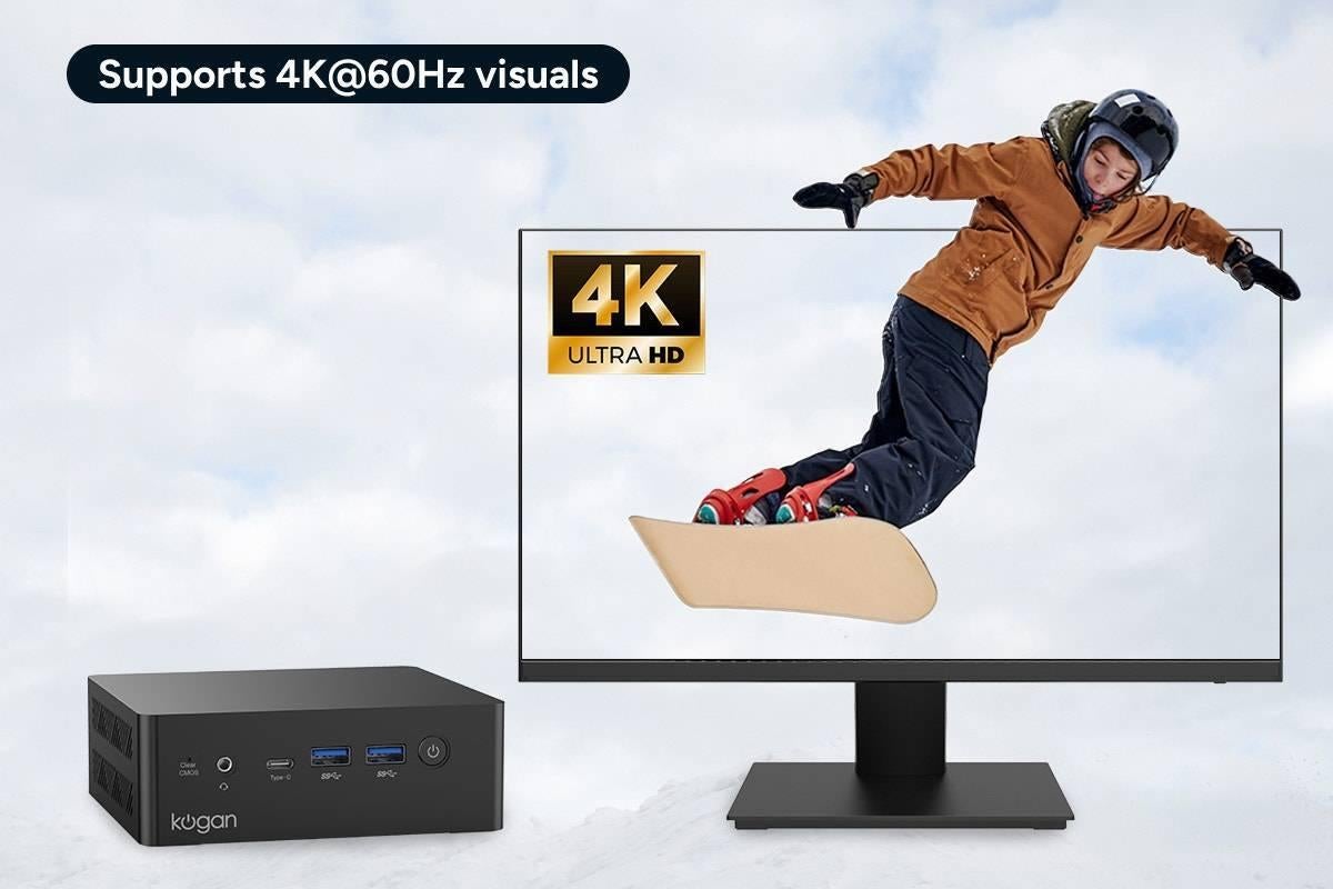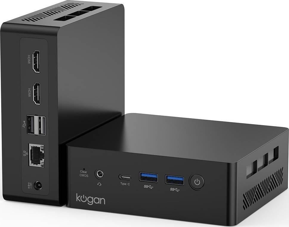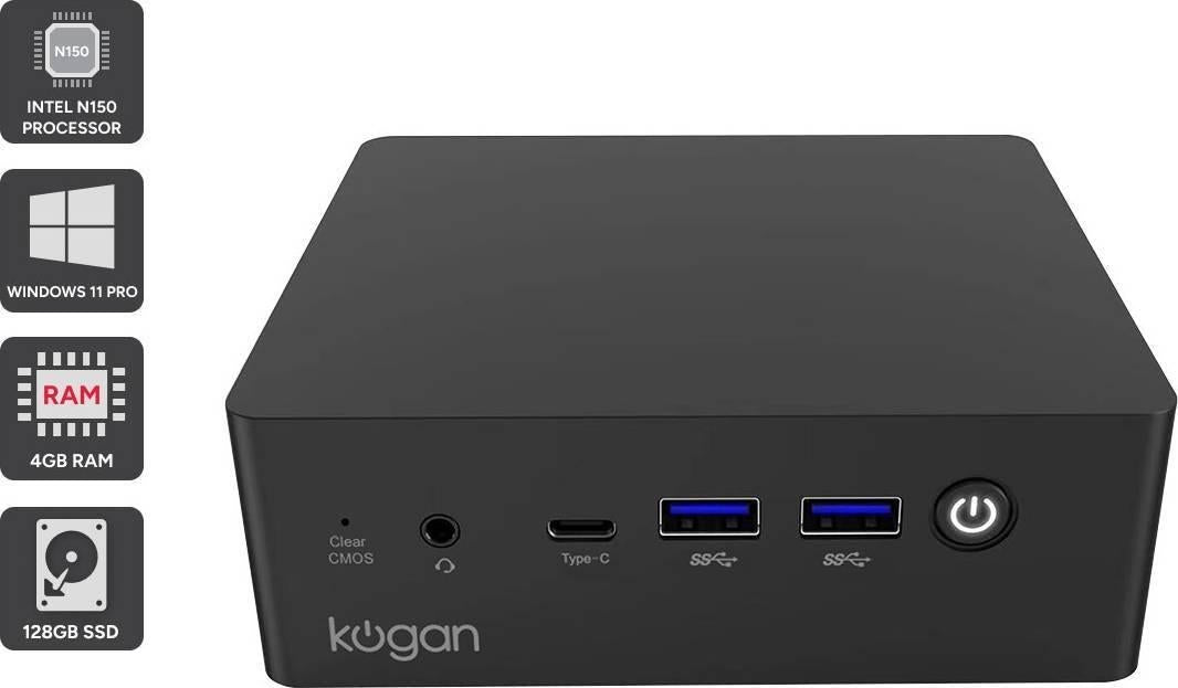 *Get a desktop computer in a space-saving design with the Kogan™ Atlas G900 Mini PC Pro, ideal for everyday computing, office tasks and home entertainment.** Intel N150 processor. 4 Core CPU runs up to 3.6 GHz.* Windows 11 Pro. Get fast performance and enterprise-grade features.* 128GB storage. Store apps, files and media with ease.* Dual HDMI 2.1. Connect two 4K displays for boosted productivity.* Bluetooth 5.0. Seamless pairing with a wide range of devices.* Versatile ports. Includes USB-C, USB 3.0, USB 2.0 and audio ports.*Efficient everyday performance*The Intel N150 processor is a quad-core CPU designed to handle daily computing tasks with ease. Whether you’re browsing, using office software, or streaming content, the processor delivers a balance of performance and energy efficiency, so you can stay productive longer without missing a beat.*Seamless multitasking in 4K*Dual HDMI 2.1 ports let you connect two ultra-high-definition displays, enabling multitasking across monitors at up to 4K@60Hz. It’s the ideal setup for professionals working across multiple windows or creatives who want more visual workspace.*Compact storage and Windows 11 Pro*With 128GB of onboard storage, there’s ample room for your most-used applications, documents and media files. Preloaded with Windows 11 Pro, you’ll also benefit from improved productivity, enhanced security and streamlined device management.*Stay connected to everything*From Bluetooth 5.0 to USB-C and USB 3.0 ports, the Atlas G900 Mini PC Pro is built for connectivity. Effortlessly hook up peripherals, displays, audio equipment and more for a flexible and clutter-free workstation.