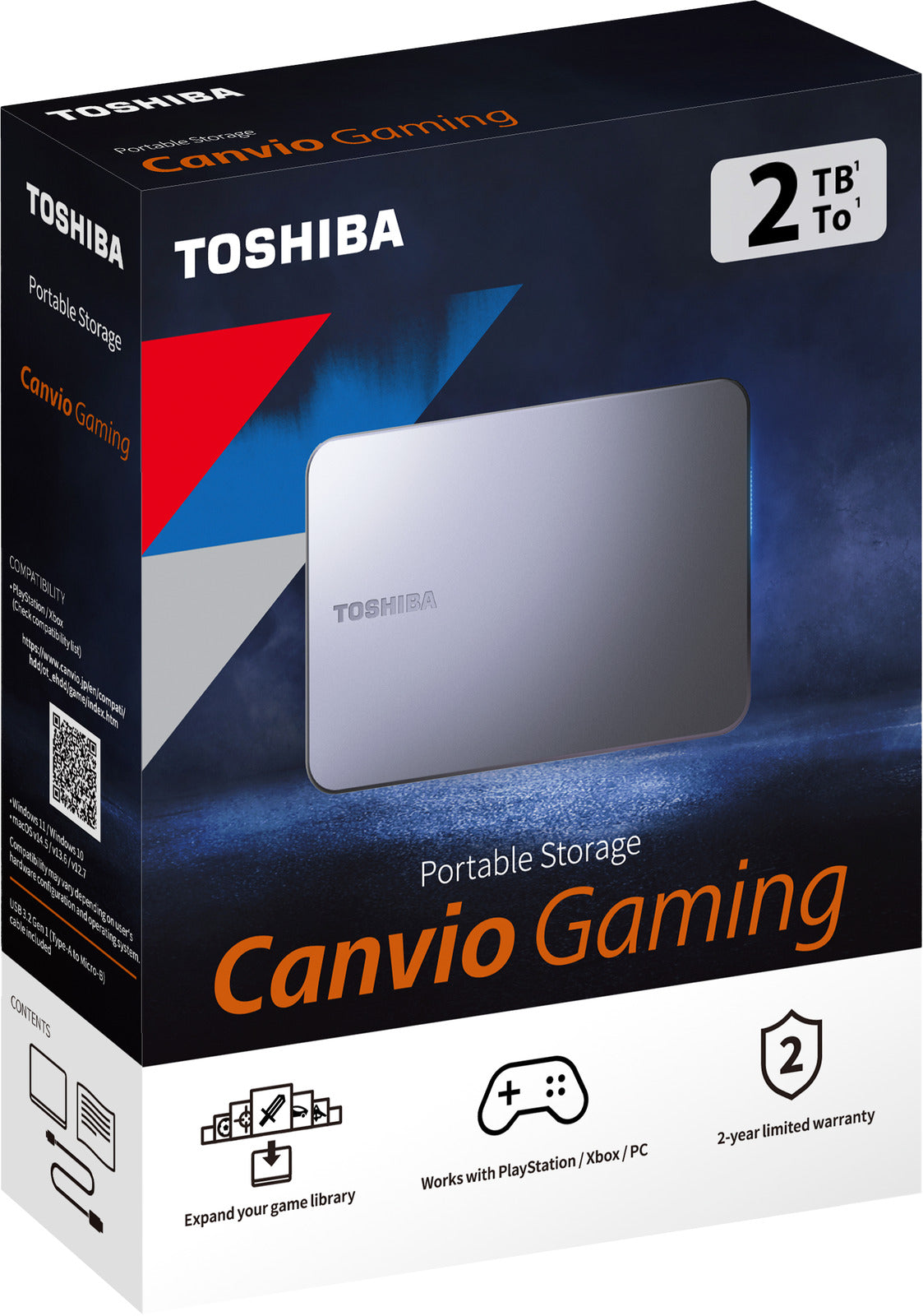 Expand your game library with the Canvio Gaming Portable Hard Drive, designedto store around 50 additional games and keep your console clutter-free. Itfeatures a sleek, lightweight design with 2TB of storage and afirmware-customised “Always-On” mode for quick access to your favouritetitles. Compatible with PlayStation, Xbox and PC, it’s built for gamers whowant more space and less hassle.