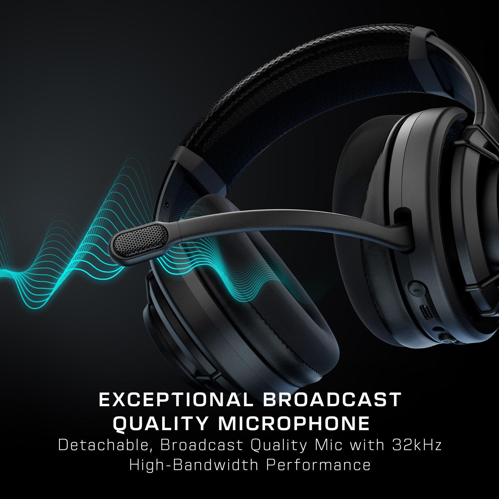 A new standard in PC gaming audio has been set with the Turtle Beach Atlas Air – the first wireless open back gaming headset for PC. 40mm drivers with high-fidelity 24– bit audio mode and a removable, flip-to-mute high-bandwidth (16-bit/32kHz sampling rate) microphone are both fully adjustable in the Swarm II software for the ultimate PC gaming experience. The world’s first floating earcup plus a floating headband lends to its class-leading light weight of 301g and an ultra-comfortable fit. Atlas Air is equipped with low-latency 2.4GHz wireless + Bluetooth for reliable wireless connection on Windows PCs.*Open Back Design*Experience the most natural and realistic high-fidelity sound while staying in touch with your surroundings, the best in game immersion and directionality to spot the enemy first. The breathable open back design also keeps your ears cool and comfortable overlong gaming sessions.*24-bit Resolution, High-Fidelity Wireless Audio*Available exclusively in PC mode, enjoy 24-bit, 96kHz sampling rate that provides a more accurate reproduction of the original signal for optimal sound quality.*Floating Fit*Revolutionizing comfort with the world’s first floating earcup paired with an adjustable floating headband the headset to instantly conforms to the contours of your head and forget it’s even there.*High-Precision Drivers*Designed specifically to maximize audio performance with its open back design, the 40mm drivers produce phenomenal, high-fidelity audio quality with an extensive 20Hz – 40kHz frequency range.*Exceptional Broadcast Quality Microphone*The removable, flip-to-mute microphone with high-bandwidth 16-bit, 32kHz sampling rate allows for broadcast chat clarity, unprecedented in a wireless headset. The unidirectional design and an included windscreen ensures minimal background noise and distortion for the clearest comms possible. Further refine your microphone settings with the Swarm II software.*Lightweight Comfort*Weighing in at just 301g with the microphone installed, the Atlas Air is the lightest headset in its class. Plus, an innovative floating design and memory foam ear cushions with ProSpecs glasses relief technology allows every gamer to enjoy the same great comfort.*Low Latency Wireless + Bluetooth*Experience low-latency PC & console freedom with 2.4GHz wireless and Bluetooth 5.2 on PC, PlayStation and mobile devices. For use in streaming setups, or as a passive wired headset, the Atlas Air has a built-in 3.5mm audio port plus an included cable.*QuickSwitch Technology*Easily switch between 2.4GHz wireless & Bluetooth modes with the built-in QuickSwitch button. A simple press of the button switches your audio & chat source between wireless & Bluetooth devices, enabling you to effortlessly transition between connections.*Long-Lasting Battery Life*Play game after game without needing a charge with up to 50 hours of battery life plus quick charge.*Advanced Audio & Mic Customization*Take your audio & microphone control to another level with the Swarm II app for desktop & mobile. Design custom audio profiles with the 10-band equalizer, and dial-in mic settings with adjustable microphone sensitivity, noise gate, and more. (Supported features limited in Bluetooth mode.)*Waves 3D Audio for PC*Immerse yourself in the middle of the battlefield with optimized audio powered by Waves 3D Audio, letting you hear ultra-detailed sound from all directions including above and below you. Waves 3D Audio is available via the Swarm II software for desktop.*Advanced Superhuman Hearing*Advanced Superhuman Hearing brings the same great battlefield advantage of Superhuman Hearing, but now with additional adjustability. Using the Swarm II software, toggle between three different preset levels and adjust the intensity of Superhuman Hearing, to dial-in the perfect sound for a wide range of games.
