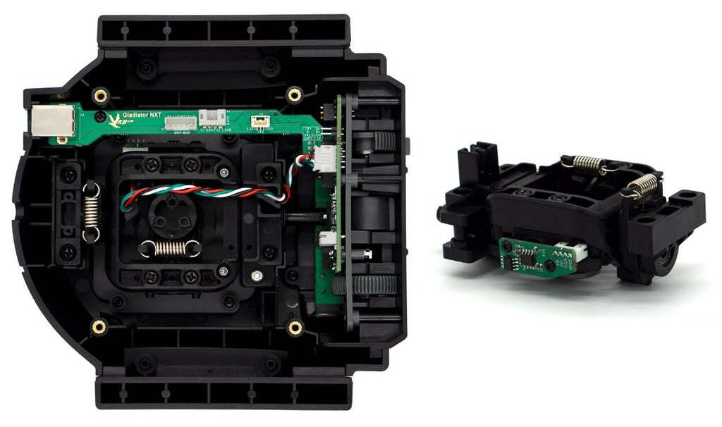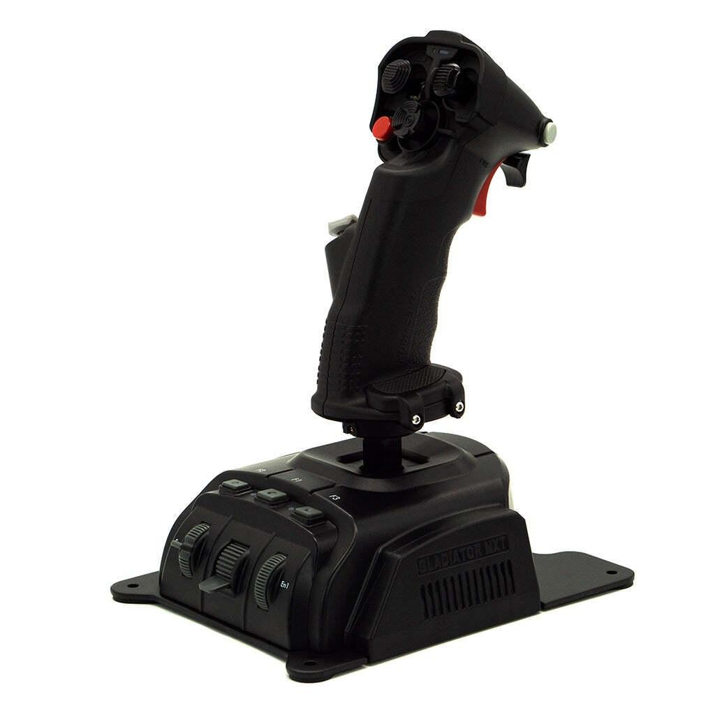 *Gladiator EVO ‘Space Combat Edition’ Premium*The Gladiator EVO Premium is the basis of a modular VKB flight control system.The ‘Space Combat’ grip is the most versatile of our grips and is equally suitable for flight and space simulation games. With lots of buttons and axes you may configure the controller to your own personal needs and depending on the aircraft or spacecraft you fly.*Features** Base & Grip made from industrial grade ABS, Gimbal made from glass-fiber-reinforced PA* Tabletop base plate made from steel* 32-bit ARM Controllers inside base and grip* ALPS buttons (Japan OEM) for extended longevity* Contactless MaRS sensors with High Resolution* Plug & Play with Driver-Free Installation (Recommended for Most Users)* Firmware Upgrade via USB* Onboard Memory for Storing Profiles* Optional Programming Software Available (For Advanced Users)*Content:** 1 GNX SCG Premium Grip (Right)* 1 GNX EVO Base*Specifications (for GNX SCG Premium Grip):** Compact grip design – Perfect for tabletop joysticks* Lockable Twist (Z-axis) with contactless MaRS sensor* 1 Dual Action Trigger* 1 Rapid Fire Trigger* 3 Hat switches with center push (8-way)* 3 Buttons* 1 analog mini stick with center push (8-way)* Programmable red colour LED & Programmable RGB LED* 2 interchangeable palm rests (total 3 palm-size adjustments)* Extra button module for C1 position* Extra hat switch module for A1 position* Trigger cover*Specifications (for GNX EVO Base):** 2 Contactless MaRS sensors on X and Y axes* 1 Auto-centering 3-position switch* 1 Throttle wheel & 1 Rotary encoder* 3 buttons* Gimbal with ball bearings* Adjustable dry clutches for user-tunable load* 2 Programmable single-color LEDs* Set of soft & strong springs*Compatible with:** STECS Throttles* GNX Extension modules* T-Rudder Mk.IV* Universal Controller Mount UCM-S GL*Dimensions:**Height table top to top of grip:* 23.5cm approx*Base plate length (deep):* 18.5cm approx*Base plate width (left to right):* 14.5cm approx