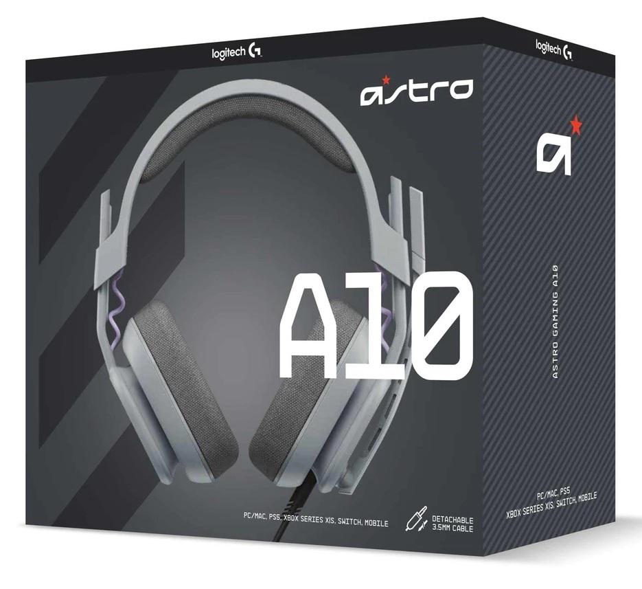 The ASTRO A10 wired headset is a sturdy and versatile headset that offers consistent comfort and audio quality. Sustainably sourced, it's built from the ground up to enhance your gaming experience. With its flip-to-mute boom mic, removable headphone cable with in-line volume control and replaceable ear cushions, it'll transform the way you hear your favourite games, making for an unforgettable audio experience.Features:* Weight (w/o cable): 240 g* Ear coupling: Over-ear* Connection: 3.5mm 5 Pole Jack* Drivers: 32 mm Neodymium Magnet* Nominal impedance: 24 Ohms* Microphone: 6.0 mm uni-directional microphone* Frequency response: 20–20,000 Hz* Sensitivity: 102dBSPL/mW @1kHz* Headband pressure: 3.5N* System requirements: 3.5 mm jack input* Package contents: A10 Headset, A10 volume cable, PC splitter cableView our Headphones Return Policy [Here](https://help.mightyape.co.nz/hc/en-nz/articles/115012111088-Returns-Policy)