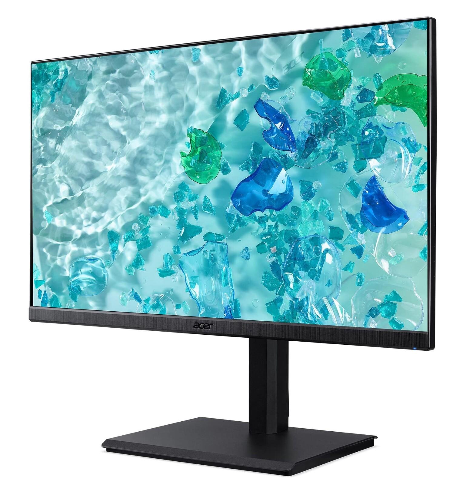 *IPS | 1920×1080 | 120Hz | 4ms | Adaptive Sync*The Acer Vero B7 Series display enhances your professional workspace with its robust ergonomic stand and a suite of color-enhancing technologies. Designed for business environments, this eco-conscious monitor supports sustainable practices while delivering reliable performance and visual comfort.* 23.8" Full HD (1920 × 1080) resolution* 120Hz refresh rate* 4ms response time* AdaptiveSync support (FreeSync/G-SYNC compatible)* ErgoStand with tilt, swivel, pivot, and height adjustment*SPECIFICATIONS** *Model:* B247Y G* *Display Size:* 23.8 inches* *Panel Type:* IPS* *Resolution:* 1920 × 1080 (Full HD)* *Refresh Rate:* 120Hz* *Response Time:* 4ms* *Aspect Ratio:* 16:9* *Brightness:* 250 nits* *Contrast Ratio:* 1500:1* *Viewing Angle (H/V):* 178° / 178°* *Color Support:* 16.7 million colors* *Sync Technology:* AdaptiveSync (FreeSync/G-SYNC)* *Speakers:* 2 × 2W* *HDMI Ports:* 1* *VGA Ports:* 1* *USB Type-C Ports:* 1* *Stand Adjustments:* Tilt, Swivel, Pivot, Height* *VESA Mount Compatible:* Yes (100 × 100 mm)* *Eco Materials:* 85% PCR, 5% OBP* *Packaging:* 100% recyclable* *Certifications:* ENERGY STAR®, TCO, EPEAT Gold* *Eye Care Technology:* Acer VisionCare 2.0* *Colour:* Black* *Dimensions (with stand):* Approx. 540 × 330 × 210 mm* *Weight:* Approx. 5.5 kg* *Power Supply:* Internal