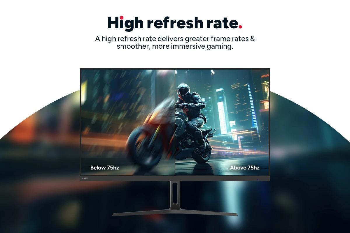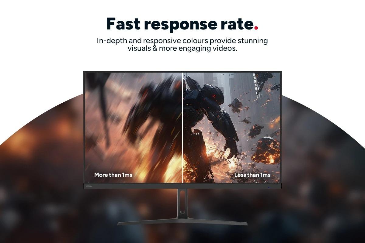 Level up your gameplay with the Kogan 27" Full HD Gaming Monitor. With an ultra-smooth 200Hz refresh rate, lightning-fast 1ms response time and vibrant HDR visuals, you’ll experience ultra-responsive performance and immersive clarity in every frame.* _1920 × 1080 resolution._ Crisp Full HD visuals for sharp, detailed content.* _200Hz refresh rate._ Ultra-smooth motion for fluid gameplay.* _1ms response time._ Minimises motion blur for sharp, responsive visuals.* _FreeSync technology._ Eliminates screen tearing for smoother performance.* _130% sRGB._ Enhanced colour accuracy for rich, vibrant visuals.* _HDR support._ Brings out deeper contrast and dynamic highlights.* _IPS panel._ Wide viewing angles with consistent, true-to-life colour.* _Low blue light._ Reduces eye strain during extended sessions.* _Multiple ports._ Includes DisplayPort 1.4, HDMI 2.1 and headphone jack. Fast refresh for a competitive edgeThe blazing-fast 200Hz refresh rate keeps motion crisp and fluid, giving you a serious advantage in fast-paced games. No stutter, no judder – just silky visuals that keep up with every move.Lag-free action when it countsWith a 1ms response time, input lag and motion blur are virtually eliminated. Every shot, dodge and combo registers instantly, giving you the speed you need to stay in control.No tearing, just winningFreeSync technology keeps your graphics perfectly in sync with your monitor. Say goodbye to choppy gameplay and screen tearing – what you see is exactly what you get.Vivid colour, every timeExperience punchy, lifelike colour with 130% sRGB coverage and HDR support. From moody shadows to bright explosions, every scene pops with clarity and depth.Comfort meets clarityThe IPS panel delivers accurate colour and detail from virtually any angle, while low blue light tech helps reduce eye fatigue – so you can play or work longer, without compromise.Connect and conquerEquipped with DisplayPort 1.4, HDMI 2.1 and a headphone jack, this monitor seamlessly integrates into your setup – ready for your console, PC or both.*Technical Specifications*Audio* Impedance: 4Ω* Speakers: 2 × 2WDimensions* VESA Wall Mount Pattern: 100 × 100mm* Weight: 4kg* With Stand: 612 × 194 × 466mm* Without Stand: 612 × 55 × 363mmDisplay* Brightness: 300cd/m²* Colour Depth: 8 bit* Colour Temperature: Warm: 6500K | Standard: 7500K | Cold: 9300K* Colours: 16.7M* HDR: Yes* Monitor Colour Gamut: sRGB 130% | Adobe RGB 100% | DCI-P3 99%* Monitor Resolution: Full HD* Monitor Size: 27"* Native Aspect Ratio: 16:9* Panel Type: IPS* Refresh Rate: 200Hz* Resolution: 1920 × 1080* Response Time: MPRT: 1ms | GTG: 5ms* Static Contrast Ratio: 1000:1* Viewing Angle: 178° (V) / 178° (H)Features* Colour: Black* Flicker-free: Yes* FreeSync: Adaptive-Sync support* Freesync Range: 48–200Hz* Low Blue Light: Yes* OnScreen Control (OSC): Yes* Over Drive: YesFunctions and Features* LED Indicator Light: YesGeneral* Type: MonitorInputs* DisplayPort: 1 × 1.4* HDMI: 1 × 2.1Outputs* Headphone Jack: YesPerformance* Tilt Angle: –5° ~ 15°Power* Adapter/Charger: 12V, 4A* Power Consumption: 48W* Power Supply: 100–240V, 50/60Hz* Standby Consumption: < 0.5WWarranty* Manufacturer Warranty: 1 Year