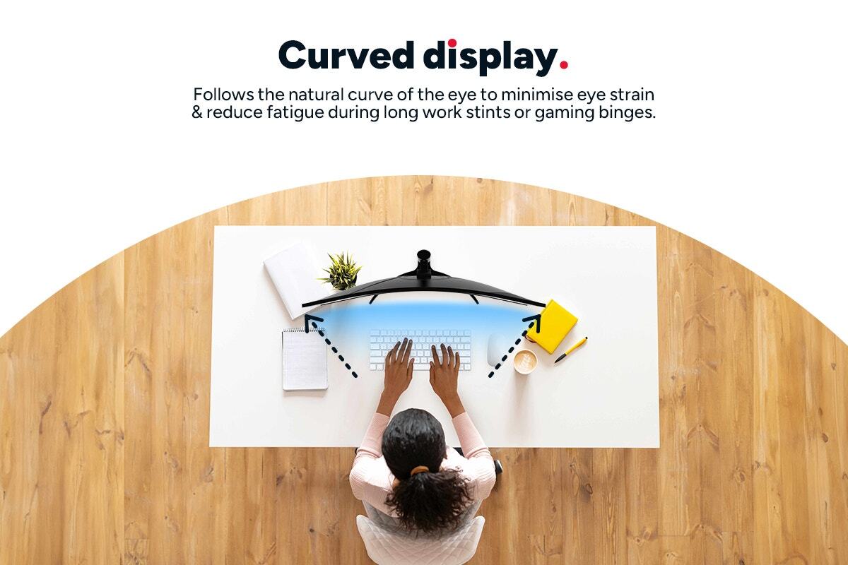 - 1500R curvature. Deeply immersive visuals and reduced eyestrain.