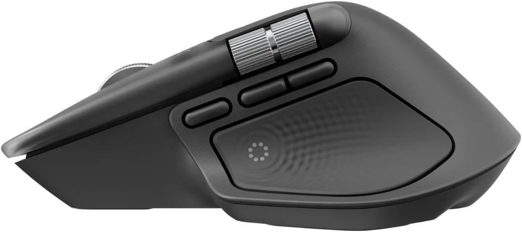 MX Master 4 brings immersive control and precision you can feel with haptic feedback. Experience haptic feedback on specific actions, shortcuts, notifications like switching desktops, slider adjustments and more. Customize vibration intensity in Logi Options+¹. With Actions Ring, save up to 33% of your time² by accessing tools and filters at your cursor.* Precision you can feel with the Haptic Sense Panel; customizable¹ haptic feedback on specific actions, shortcuts, notifications enhancing productivity on this wireless Bluetooth mouse* Effortlessly access favorite tools with Actions Ring² on this MX Series mouse—a dynamic, customizable overlay adapts to each app, placing most used filters, adjustments, and shortcuts at your cursor* Enjoy 2X more powerful connectivity³ with a USB-C dongle, advanced radio chip, and optimized antenna for faster, stronger, reliable performance — or use Bluetooth for more versatility* Quiet Clicks on MX Master 4 reduce noise and distractions, offering a soft, satisfying feel with 90% less click noise⁴ — perfect for focused workflows1 – Requires Logi Options+ app, available for Windows and macOS at app.logi.com2 – Logitech Ergo Lab study (2025) with 37 MX Master mouse users tested across 8 desktop actions. Results may vary depending on assigned shortcuts.3 – Compared to MX Master 3S4 – Compared to MX Master 3, MX Master 4 has 90% less Sound Power Level left and right click.*Technical Specifications**General Specifications*Haptic feedback is supported for key Options+ features like Actions Ring, Smart Actions, Gestures and for the following plugins:: Adobe Photoshop, Adobe Lightroom Desktop, Zoom. Coming in October: Adobe Premiere Pro.*Sensors**Sensor Technology:* Darkfield high precision*Nominal value:* 1000*DPI (Minimal and maximal value):* 200–8000 (can be set in increments of 50 DPI)*Buttons**Number of Buttons:* 8*Scroll Wheel:* Yes, MagSpeed wheel with smart shift*Horizontal scroll:* Yes*Thumb wheel:* Yes, same as horizontal scroll*Gesture button:* Yes*Customization app:* Yes, Options + and basic support in Tune*Battery & Charging**Battery type:* Rechargeable 650 mAh*Battery life:* 70 days*Connectivity**Connection Type:* Wireless*Wireless technology:* Bluetooth Low Energy*Wireless range:* 10 m*Bluetooth Low Energy (BLE):* 5.1*System Requirements**Bluetooth:* Required: Bluetooth Low Energy, Windows 11 or later^, macOS 13 or later^, Linux^^, ChromeOS^^, iPadOS 15 or later^^, Android 12 or later^^. (^Customize device by installing the Logi Options+ App available for recent versions of Windows and macOS at app.logi.com, ^^Device basic functions will be supported without software for other systems than Windows and macOS)*Logi Bolt USB receiver:* Required: USB-C Port, USB-A Port, Windows 10, 11 or later^, macOS 13 or later^, Linux^^, ChromeOS^^. (^Customize device by installing the Logi Options+ App available for recent versions of Windows and macOS at app.logi.com, ^^Device basic functions will be supported without software for other systems than Windows and macOS)*Compatibility:* Compatible with both USB-C and USB-A receivers.