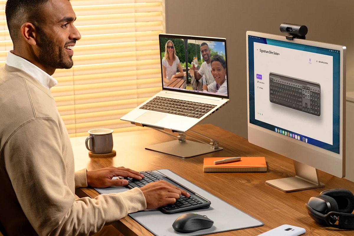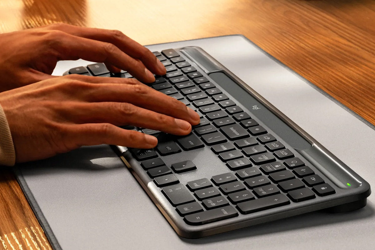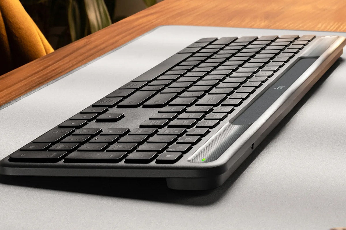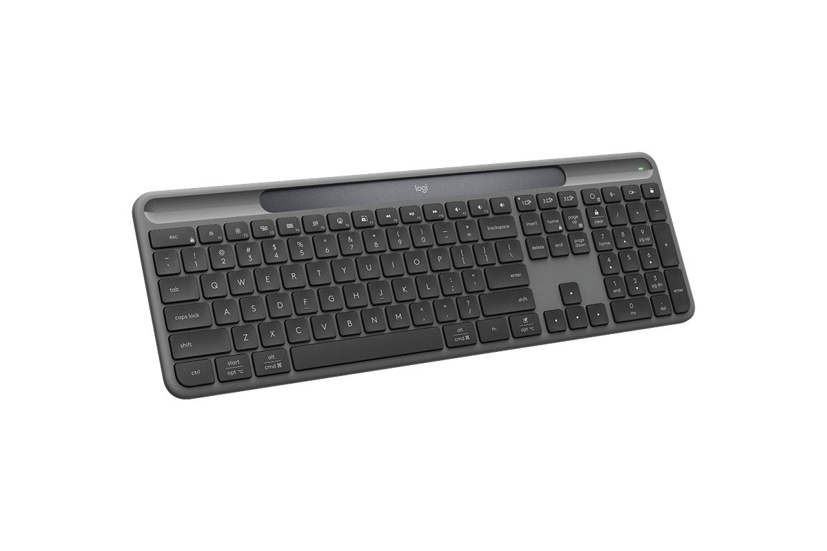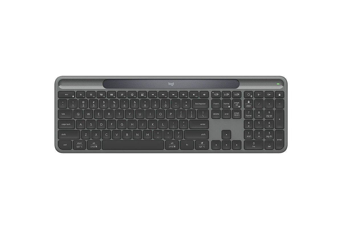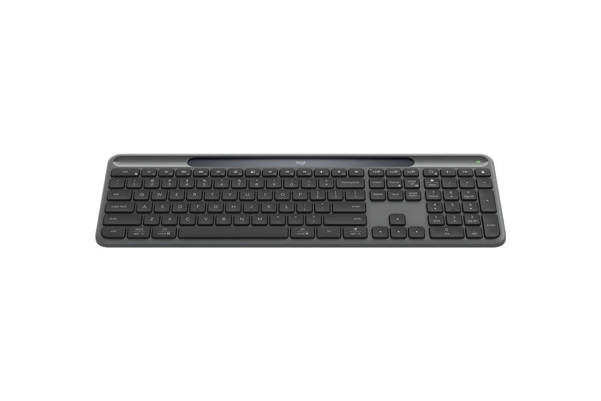 p{font-weight:bold;font-size:1.2em}. The Logitech Signature Slim Solar+ Wireless Keyboard delivers a sleek, low-profile typing experience with solar charging, quiet keys, multi-device connectivity and long-lasting performance, designed for modern workspaces and effortless everyday productivity and seamless control.* *Powered by any light.* Solar and artificial light sources provide hassle-free, wireless typing.* *Durable build.* Designed for 10 million keystrokes with recycled plastic and renewable-energy aluminium.* *Multi-device support.* Connect up to three devices and switch seamlessly with Easy Switch.* *Smart actions.* Automate tasks and launch apps with a single keystroke via Logi Options+ App.* *Customisable keys.* Personalise shortcuts for browsing, music and more using Logi Options+ App.* *AI launch key.* Quick access to AI tools, fully customisable to any app.* *Multi-device mouse pairing.* Effortless typing and clicking across multiple computers and OS.* *Quiet and comfortable typing.* Laptop-style keys provide silent, responsive feedback for productive work.* *Elegant design.* Sleek, stylish finish enhances any workspace.* *Logi LightCharge technology.* Converts light into stored power lasting up to 4 months, up to 10 years.p{font-weight:bold;font-size:1.2em}. Built to last longerEngineered for durability, Signature Slim Solar+ is rated for up to 10 million keystrokes for worry-free everyday use. Crafted with recycled plastic and an internal aluminium plate produced using renewable energy, it delivers long-term performance with a reduced environmental footprint.p{font-weight:bold;font-size:1.2em}. A cleaner desk, a smarter setupCreate a streamlined, cable-free workspace with support for up to 3 devices. Seamlessly switch between them using Easy Switch, keeping your setup minimal while staying fully connected.p{font-weight:bold;font-size:1.2em}. One tap, instant productivityBoost efficiency using Smart Actions in the Logi Options+ App. Launch multiple work apps at once or switch to entertainment in seconds - automate everyday routines with a single keystroke and reclaim your time.p{font-weight:bold;font-size:1.2em}. Instant access to AI assistanceGet extra help exactly when you need it with the dedicated AI launch key. By default, it opens your system’s AI assistant, but you can customise it to launch any application of your choice.p{font-weight:bold;font-size:1.2em}. Seamless multi-device pairingPair your keyboard with a Logitech multi-device mouse to move smoothly between computers—even across different operating systems. Connect via Bluetooth and transfer text, images and files effortlessly between devices.p{font-weight:bold;font-size:1.2em}. Designed for comfort, crafted to impressEnjoy quiet, responsive typing with a familiar laptop-style feel that keeps you focused and comfortable. Combined with a sleek, modern design, it enhances both your productivity and your workspace aesthetic.p{font-weight:bold;font-size:1.2em}. Advanced Logi LightCharge technologyThe advanced LightCharge technology is an advanced light-absorbing strip with a long-lasting battery designed to perform for up to 10 years. It converts both natural sunlight and indoor lighting into reliable stored energy, holding power for up to four months - even in low-light conditions.