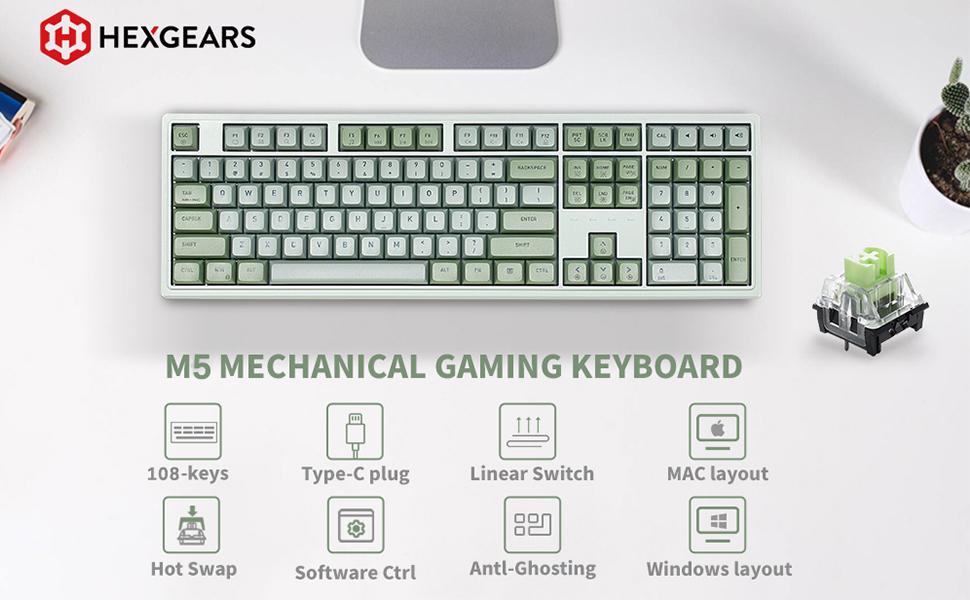 Hexgears M5 Full Size Linear Switch Mechanical Keyboard - Green