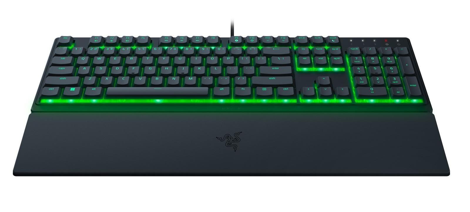 Meet the Razer Ornata V3—a low-profile ergonomic gaming keyboard powered by Razer Chroma RGB. Sporting a new ultra-slim form factor, more durable keycaps, and unique mecha-membrane switches, enhance your work and play with a hybrid keyboard that combines the best of both worlds.*Ergonomic Gaming Experience*With slimmer keycaps and shorter switches, enjoy natural hand positioning with a low-profile ergonomic gaming keyboard that allows for long hours of use with little strain.*Clicky Keystrokes with a Soft, Cushioned Touch*Fusing the snappy, clicky feedback of a mechanical switch with the familiar feel of a conventional keyboard, each keystroke you make is as satisfying as it is precise.*Improved Fade and Scratch Resistance*More durable than regular keycaps, the UV coating ensures more fade-resistant legends and greater protection against wear and tear from frequent use.*Convenient Control*Configure them to pause, play, skip and adjust everything from brightness to volume—the ultimate convenience as you enjoy your entertainment.*Extended Gaming Support*Designed to seamlessly snap to the low-profile keyboard, the soft-touch wrist rest provides ample comfort and support for your wrists—especially vital for long periods of use.*Customizable Lighting*With 16.8 million colors and a suite of RGB effects to choose from, personalize the keyboard and get access to dynamic lighting effects for hundreds of Chroma-integrated games.TECH SPECS:* SWITCH TYPE – Razer Mecha-Membrane Switches* SIZES – Full Size* LIGHTING – 10 Razer Chroma RGB Lighting Zones* WRIST REST – Yes* ONBOARD MEMORY – None* MEDIA KEYS – Dedicated Media Controls* PASSTHROUGH – None* CONNECTIVITY – Wired – Attached* KEYCAPS – UV-coated ABS Keycaps* OTHERS: * Durable spill-resistant design * Cable routing options * Razer Synapse enabled * Fully programmable keys with on-the-fly macro recording * 6-key roll over * Gaming mode option * Braided fiber cable * 1000 Hz Ultrapolling