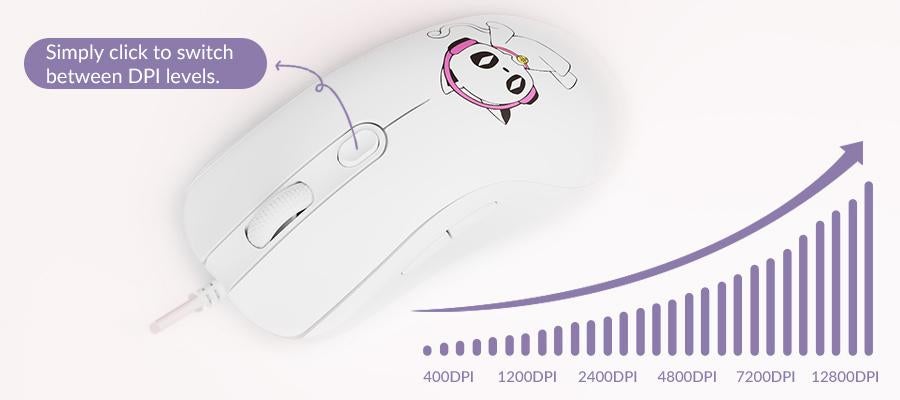*Akko 7th Anniversay*The mouse is designed ergonomically, providing a comfortable fit for the palm of your hand.Enjoy faster and smoother operations while maintaining flexibility and a comfortable grip.*6 Adjustable DPI Levels*AG325C supports 6 adjustable DPI levels ranging from 400 to 12800.This allows for precise positioning and accommodates different screen resolutions.