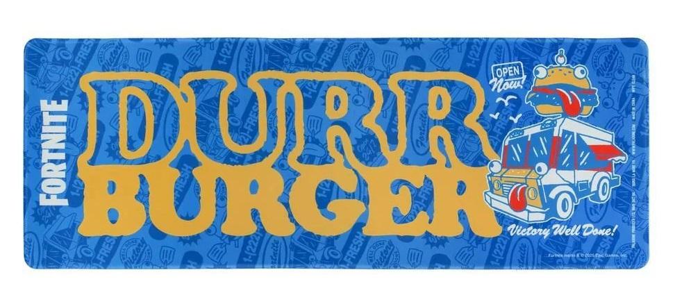 Level up your workspace with this Durr Burger inspired Fortnite Desk Mat. The non-slip extended mouse pad is a great desk accessory for gamers.Features:* Level up your gaming setup* 80cm x 30cm (31" x 12") wipe clean desk mat* Perfect for desks and gaming* Officially licensed Fortnite product