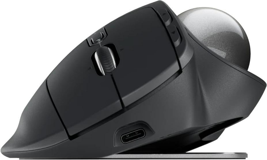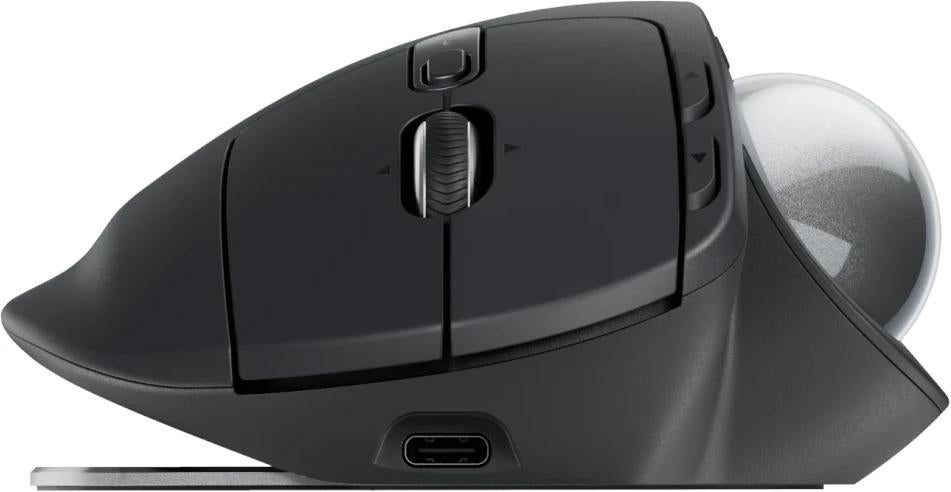 Experience peak comfort and performance with MX Ergo S advanced wireless trackball, certified by ergonomists, with a 20-degree tilt angle for less muscle strain in your forearm. Now with quiet clicks and quick USB-C charging.*Elevated comfort and precision*MX Ergo S, Logitech’s most advanced wireless ergonomic trackball yet, with a 20-degree tilt angle and 6 customizable buttons – now with quiet clicks and quick USB-C charging (cable not included).* *Maximize control. Minimize movement.:* Track precisely and effortlessly with thumb control, while your hand stays fully supported on the sculpted ergonomic design with a soft rubber grip – a good fit for medium to large-sized hands. Switch between speed and high-precision tracking with a tap of the DPI button.* *Tilt for more comfort:* MX Ergo S is certified by ergonomists, with a unique 20-degree tilt angle that encourages a better forearm posture and reduces muscle strain in the forearm by 27% for elevated comfort throughout the day.* *Smoother days, your way.:* Work faster with 6 customizable buttons and a DPI button to effortlessly switch cursor speed. Assign time-saving shortcuts, or Smart Actions tailored to your needs using the Logi Options+ App.* *Key Features:* * *Now with quick USB-C charging:* MX Ergo S is now compatible with USB-C charging (cable not included), with a full charge lasting up to 120 days and just a 1 minute charge for 24 hours of use. Compatible with any USB Type-C to USB Type-C or USB Type-A to USB Type-C cables, so you can use cable you already have in your home or at work. * *Now with quiet clicks:* Work without distraction with quiet clicks. Experience the same satisfying click feel on MX Ergo S but with 80% quieter clicks compared to MX Ergo. * *Built for advanced setups:* Connect up to 2 devices via Bluetooth or the included Logi Bolt receiver, and seamlessly switch between computers with the Easy-Switch button. MX Ergo S is compatible with Flow Technology, allowing you to work across devices and operating systems with the Logi Options+ App. Click and drag files across multi-OS devices.*Technical Specifications:** *Dimensions:* * *Height:* 132.5 mm * *Width:* 99.8 mm * *Depth:* 51.4 mm * *Weight (without metal plate/without receiver):* 164 g * *Weight (with metal plate/without receiver):* 259 g* *Sensor Technology:* * Logitech Advanced Optical Tracking * *Minimal and maximal value:* 512–2048 dpi* *Buttons:* * *Number of Buttons:* 8 (Left/Right-click, Back/Forward, Scroll-wheel with Right/Left-tilt and Middle-click, Precision Mode, Easy-switch) * *Number of customizable buttons:* 6* *Customization app:* * Supported by Logi Options+ on Windows and macOS * Requires Logi Options+ app, available for recent versions of Windows and macOS at logi.com/optionsplus.* *Battery type:* * Rechargeable with USB-C charging * *Battery life:* Up to 120 days on a single full charge; 1-min charge for 24-hour of use * Cable not included, USB-C cable available on logi.com for purchase* *Connection Type:* * Logi Bolt USB Receiver * Bluetooth Low Energy Technology* *Wireless range:* 10-m (33-ft) wireless range* *Sustainability:* * *Graphite plastics:* 20% post-consumer recycled material * *Paper Packaging:* FSC™-certified* *System Requirements:* * *Logi Bolt USB Receiver:* * *Required:* USB-A port , Windows 10, 11 or later , macOS 12 or later , Linux, ChromeOS * *Bluetooth:* * *Required:* Bluetooth Low Energy , Windows 10, 11 or later , macOS 12 or later , Linux , ChromeOS , iPadOS 15 or later , Android 12 or later * Internet access required to download optional customization app Logi Options+* *Warranty Information:* 1-Year Limited Hardware Warranty* *Part Number:* * *Graphite MX Ergo S:* 910–007261* *What's in the box:* * Advanced Wireless Trackball * Logi Bolt Receiver * Document * (Cable not included)