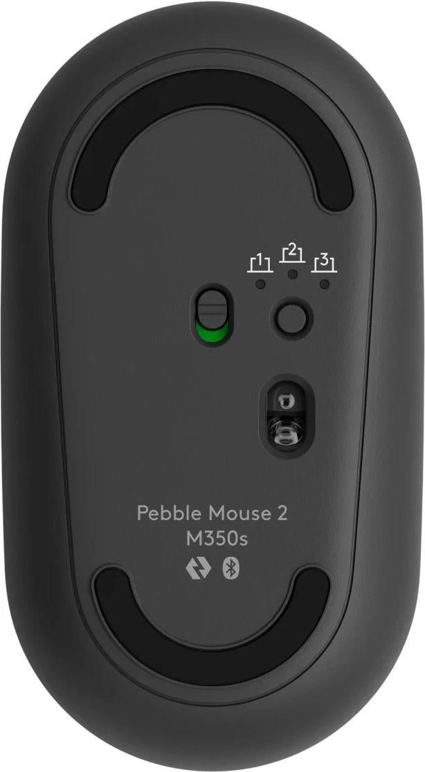_Slim, compact Bluetooth® mouse with a customizable button._*HOW YOU EXPRESS YOURSELF IS UP TO YOU*Defy mundane. Defy bland. DEFY BORING.Add a touch of your colorful self to your every day with the Pebble Mouse 2. A mouse with more color and even smarter tech.* *Scrolling:* Line-by-Line scrolling wheel* *Tracking:* High-precision optical tracking* *Ambidextrous design:* Yes* *Quiet Clicks:* Yes* *SilentTouch Technology:* Yes* *Multi-device:* Yes, Up to 3 devices* *Customization App Support:* Yes with Logi Options+* *Customizable Button:* Yes, 1 (scroll wheel with middle click)* *Compatibility:* Windows, macOS, Linux, Chrome OS, Android, iPadOS* *Connectivity:* * Bluetooth * Compatible with Logi Bolt USB receiver *(not included)** *Power:* 24 months* *Color Options:* Tonal Rose, Tonal White, Tonal Graphite* *DESIGNED TO BE DIFFERENT:* Let the world see who you are with the Pebble Mouse 2 M350s. A minimalist, slim, and round mouse designed to stand out.* *RECYCLED PLASTIC DOESN’T HAVE TO BE DULL:* We don’t just stop at a unique design, we make sure that our products are responsibly made too. The Pebble Mouse 2 comes in a range of colors made with more than 50% recycled plastic so you can choose a color that fits your vibe.* *READY TO GO WHEN YOU ARE:* Compact, and ready to make big moves. Its lightweight and portable design means you can slip the mouse into your bag, whenever, wherever.* *DEVICE-HOPPING MADE EASY:* Switch between 3 of your devices with a press of the Easy-Switch button. Compatible with Windows, macOS, iPadOS, and Android.* *SHHH – QUIETER CLICKING:* Hear that? No? Perfect. Keep it on the low with Silent Touch Technology, which removes 90% of click noise, so you can keep clicking away with no distractions.* *YOUR APPS AT YOUR FINGERTIPS:* Personalize the middle button of your mouse with the Logi Options+ App to do more like sending emojis on Whatsapp, or shuffling your Spotify playlist.* *YOU’VE GOT OPTIONS:* Your mouse does more than just click. With the Logi Options+ App, you’ll be able to customize the middle button of your mouse to do everyday actions like copy/paste, screen capture, and open app, so you can do things your way.* *GO FOR LONGER:* Need more power? Pebble Mouse 2 M350s comes with up to 24 months of battery life to keep you going for longer and worry-free.*Technical Specifications** *Dimensions:* * *Height:* 106.7 mm * *Width:* 58.7 mm * *Depth:* 26.62 mm * *Weight (including battery):* 76 g* *Technical Specifications:* * *Special features:* * Ambidextrous, slim, round shape made with recycled plastic * Multi-device pairing (up to 3 devices) * Customizable middle button with Logi Options+ App * Silent clicks with Silent Touch Technology * _Click noise reduced by over 90% compared to Logitech M185. Left click and typing dBA level measured by an independent lab at 1 meter._ * *Buttons:* * *Number of Buttons:* 3 (Left/Right-click, Scroll-wheel with middle click) * *Customizable button with Logi Options+ App:* 1 (scroll wheel with middle click) * *Customization app:* Supported by Logi Options+ App on Windows and macOS * *Sensor Technology:* High-precision optical tracking * *DPI range:* 400–4000 dpi (Fully adjustable with 100DPI increments) * *Nominal value:* 1000 dpi * *Connectivity:* * *Connection Type:* Bluetooth Low Energy Technology * *Connection type support:* Compatible with Logi Bolt USB receiver (not included) * *Wireless range:* 10 m * _Wireless range may vary due to environmental and computing conditions._ * *Battery:* * 1 AA battery (Alkaline Battery); On/off power button * *Battery life:* 24 months * _Battery life may vary based on user and computing conditions._ * *Connect / Power:* On/Off Switch * *Indicator Lights:* 3 Easy-Switch Bluetooth channels * *Sustainability:* * *Tonal Graphite plastics:* 76% post-consumer recycled material * *Tonal white and Tonal Rose plastics:* 58% post-consumer recycled material * _Excluding plastic in printed wiring assembly (PWA) and packaging._ * *Paper Packaging:* FSC™-certified * Certified carbon neutral* *Warranty Information:* 1-Year Limited Hardware Warranty* *Part Number:* * *Tonal White:* 910–006986 * *Tonal Graphite:* 910–006988 * *Tonal Rose:* 910–006987* *Compatibility:* * *Bluetooth Low Energy:* * Internet access required to download optional customization app Logi Options+ * _Available on Windows and macOS at logi.com/optionsplus_ * *Bluetooth Required:* * Bluetooth Low Energy * *Customize the device by installing the Logi Options+ App for Windows or macOS.:* * Windows® 10, 11 or later * macOS 11 or later * *Logi Options+ App is currently not supported. The device’s basic functions will work without it.:* * iPadOS 14 or later * Android™ 9.0 or later * ChromeOS™ * Linux® * Works With Chromebook™ * _This product works with devices capable of running the latest version of ChromeOS and has been certified to meet Google's compatibility standards. Google is not responsible for the operation of this product or its compliance with safety specs. Chromebook and the Works With Chromebook badge are trademarks of Google LLC._ * Compatible with Logi Bolt USB receiver (not included).* *In the Box:* * Pebble Mouse 2 M350s * 1 x AA Alkaline battery (pre-installed) * User documentation * Important Info Document (IID)
