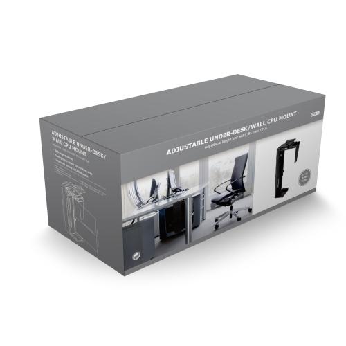 *_Mount Under Your Desk or on The Wall_*With this adjustable under-desk/Wall CPU mount, placing your CPU in a convenient, accessible place has never been easier. You'll be able to mount your CPU instead of leaving it on the floor to take up your foot space! 360 degree swivel ensures easy access to the cables and ports on the back of CPU. It’s weight capability is 10kg/22lbs. This product is not only a great organizational tool, but also reduces CPU’s internal contamination and extends equipment life.*Features:** 360° Swivel: allows for easy access to backside ports and cables* Depth Adjustment:fits a variety of CPU sizes and shapes* Under-Desk Installation: saves more space and keeps your CPU dust-free*Specifications:** Product Category: Under-desk CPU Holder* Rank: Standard* Material: Steel* Color: Matte Black* Weight Capacity: 10kg (22lbs)* Height Range: 300–533mm (11.8"-21")* Depth Range: 88–203mm (3.5"-8")* Swivel Range: +180°~-180°* Installation: Wall Mounted,Under Desk* Accessory Kit Package: Normal/Ziplock Polybag