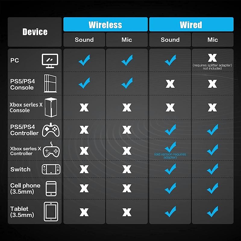 Wireless gaming headset combines high-performance 2.4 GHz lossless wireless for Pro-level gaming audio on PlayStation and PC, with the convenience of simultaneous Bluetooth connectivity for most of your mobile devices.Features ultra-low latency 2.4GHz lossless wireless for high fidelity audio, the audio latency is less than 38ms which is far better than Bluetooth 150ms, no audio and video to be out of sync issues, so you can enjoy an immersive lag-free wireless gaming experience.The 50mm driver plus 2.4G lossless wireless emphasizes both subtle and critical in-game background sounds, allowing you to hear every detail, so you will never miss a step or shot during game playing.Thanks to impressive 48-hour battery life and fast USB-C charging, the gaming headset is ideal for listening to music or playing long-session video games throughout the day on a single charge.*Features:** Bluetooth is compatible with most of your Bluetooth-enabled devices.* This headset is compatible via 2.4GHz wireless connection on PC, PlayStation* 3.5mm audio jack is compatible with PC, Mac, laptop, PlayStation, Xbox, Nintendo Switch, cell phones and VR.*Specifics:** *Colour* – Black and Red* *Material* – ABS* *Package Size* – 8.46 × 7.8 × 4.65 cm* *Weight* – 500g* *Battery capacity* – 1200mAh* *Usage Time* – 48 hours* *Charging Time* – 4 hours* *Standby Time* – About 200 hours* *Input* – USB Type-C, DC5V1A* *Frequency reponse* – 20Hz – 20KHz* *Sensitivity* – 97±3dB@1KHz* *Mic sensitivity* – –38±3dB@1KHz