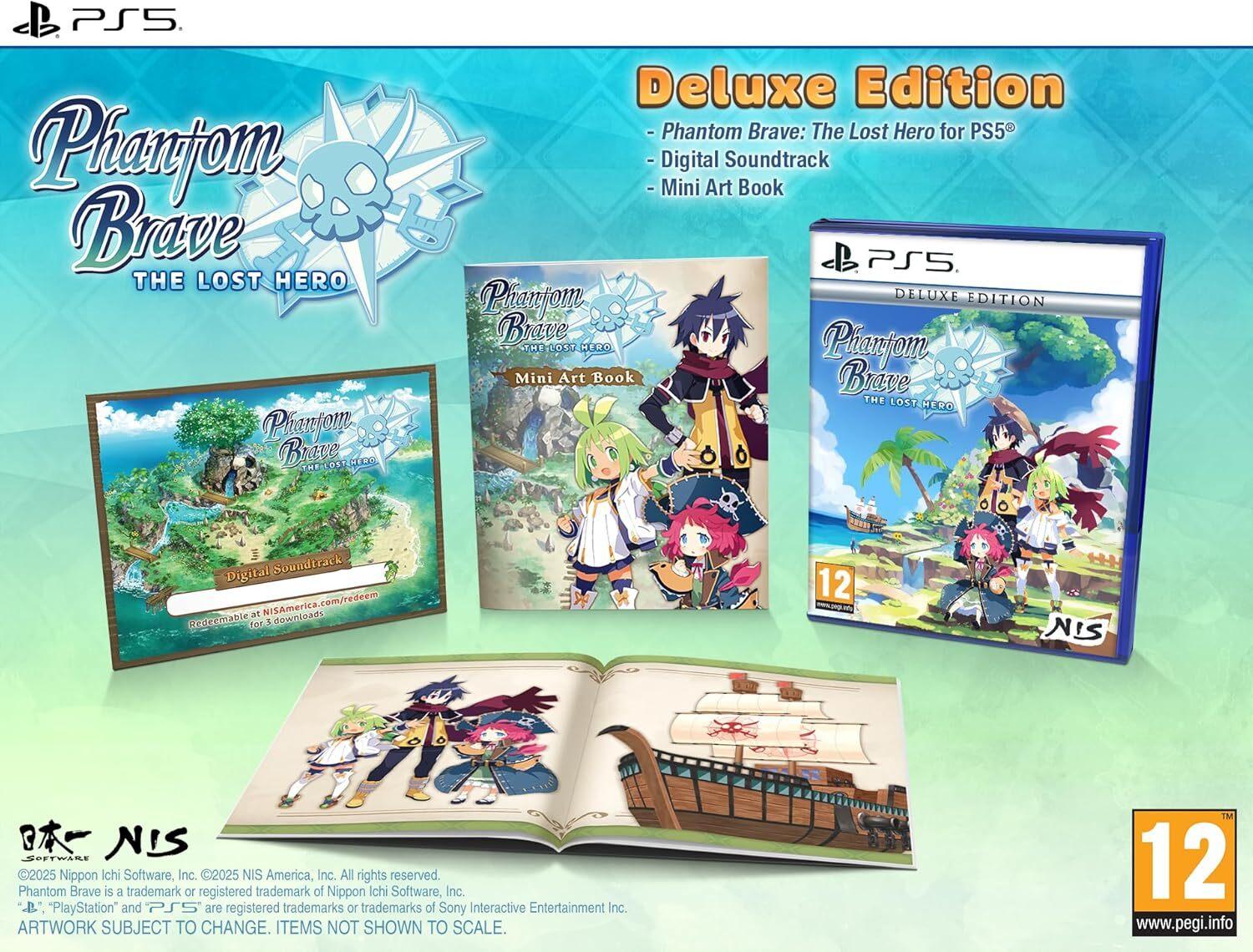 Phantom Brave: The Lost Hero Deluxe Edition* Phantom Brave: The Lost Hero game* Soundtrack sampler on paper voucher* Softcover art bookMarona is a young girl with the power to speak to Phantoms, the spirits of those who have passed on. Alongside her dear friend, the Phantom Ash, she sails the ocean world of Ivoire, providing aid to those in need. But when a fleet of ghost ships attacks and separates them, it’s up to Marona and her new friend Apricot to assemble the legendary crew that defeated the ghost ships once before.Phantom Brave: The Lost Hero is an unconventional Strategy RPG that features free movement on a gridless map. Summon your Phantom squad members during battle by “Confining” their souls to objects on the map. What object you Confine them to is up to you, and each different object informs their stats. Phantoms can also “Confire” with special gadget items for slow-moving but hard-hitting attacks. In addition, Marona can “Confriend” with Phantoms to transform her appearance and access special attacks!With over 50 characters and 300 skills to master, Phantom Brave: The Lost Hero is an adventure you won’t forget!Features:* Play It Your Way: Create a team of allies from over 50 unit types and send them into battle! How the fight unfolds is limited only by your imagination.* Phantom Possession: Take on tactical turn-based RPG battles using the Confine system, which allows Phantoms you've befriended to combine with and possess items to battle alongside you!* Light-hearted Adventure: Marona may be on a quest to save her dear friend Ash, but that doesn’t mean there won’t be fun and new friendships to be found along the way!