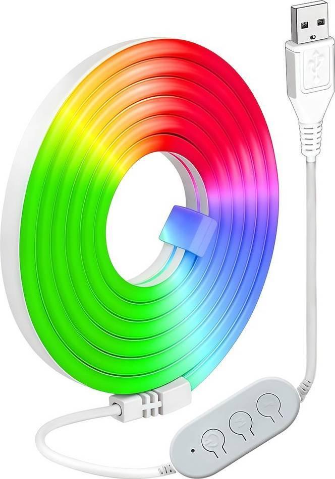 Playmax RGB Flexi Strip lightFeatures:* Flexi Strip light* Rainbow RGB light: cool rainbow RGB light, plug and play, different light modes available* Cuttable and flexible: cut it as you want (3 LEDS per cut) soft stripe can be bent to the shape you like* Easy control:3-button control device and Bluetooth-connected app control* Easy Install: can be easily installed on the wall or stuck to your desk* Waterproof: IP67 waterproofSpecs:* Power type: USB* Voltage: 5V* Power: 8W/m* Dimensions: 6_12mm_3m* Beam Angle: 180* Rendering index: Ra92* Waterproof level: P67