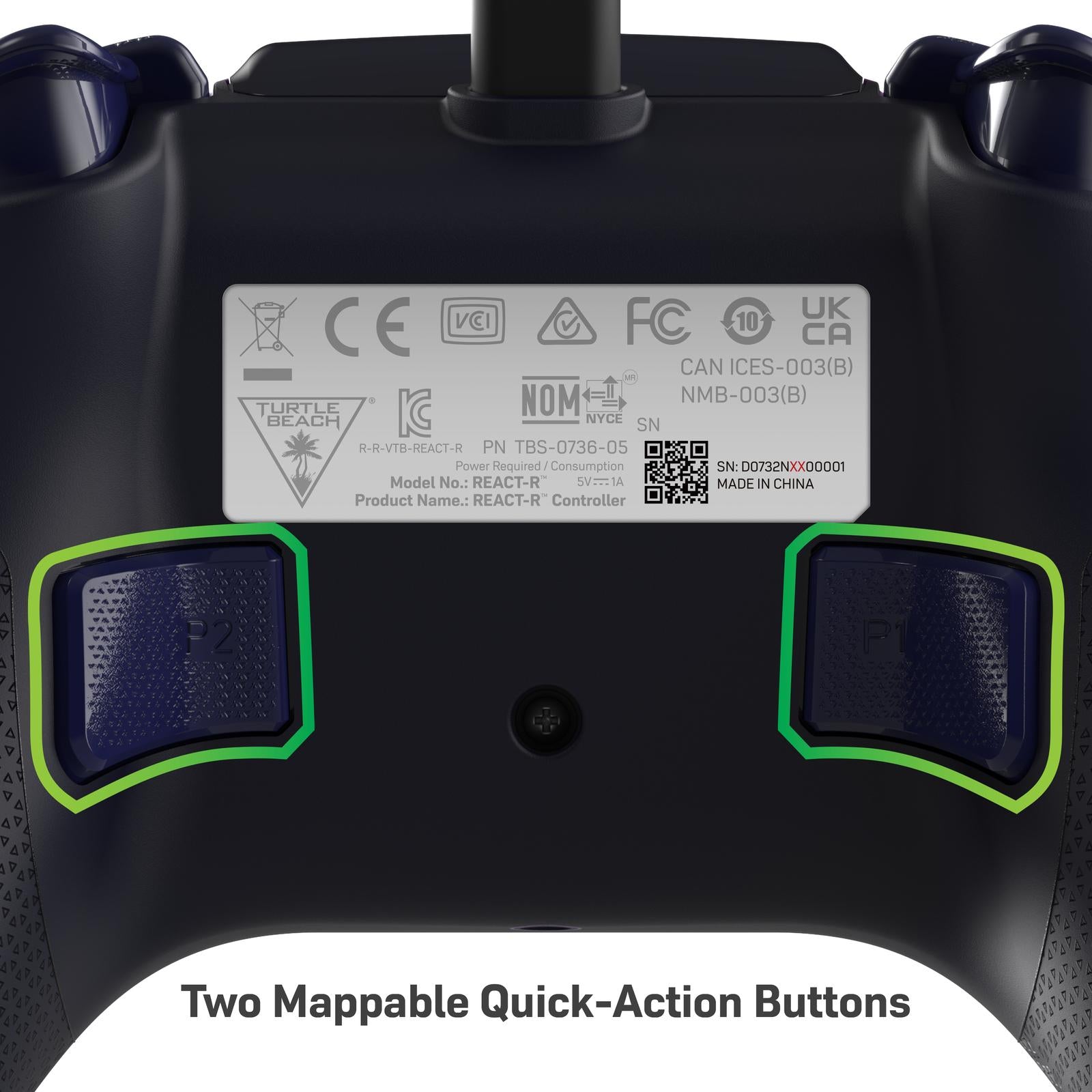 React faster with the Turtle Beach REACT-R Controller for Xbox Series X, Xbox Series S, Xbox One X, Xbox One S & Window PCs. Plug in any 3.5mm headset and instantly upgrade your audio with quick-access controls for exclusive Superhuman Hearing, game & chat volume balance, and mic mute.Play longer and stay in control thanks to an ergonomic handle shape and textured grips, handles and triggers. Two mappable quick-action buttons on the backside of the controller let you customize your controls for quicker reactions.Feel the rumble of explosions, or the recoil of a gunshot with vibration feedback thanks to dual rumble motors in the handles. Plus, the REACT-R Controller is officially licensed by Microsoft for Xbox, so you can count on reliable button presses & smooth thumbstick movements over heavy usage.Features:* 3.5MM HEADSET CONNECTION – Take advantage of proven Turtle Beach audio functions by plugging in any 3.5mm connected headset.* VIBRATION FEEDBACK – Dual rumble motors in the handles enhance immersion for realistic, next-gen gameplay.* RESPONSIVE CONTROLS – React faster with textured triggers and bumpers, an accurate 8-way D-pad, and smooth thumbstick movement.* ERGONOMIC TEXTURED GRIPS – Textured handle surfaces and a comfortable, fatigue-free shape keep your hands firmly in place while reducing strain over long gaming sessions.* OFFICIALLY LICENSED FOR XBOX – The REACT-R Controller is built to dominate on Xbox Series X, Xbox Series S, Xbox One and Windows PCs.* WIRED TO WIN – Equipped with a detachable 8ft./2.5m cable with USB-C connector.Specifications:* Connectivity – Detachable 8ft / 2.5m cable with Type-C USB Connector (Type-A at console)* Audio Input/Output – 3.5mm audio port for stereo audio output & microphone input* Weight – 0.6lbs / 271g (Without Cable)* Dimensions – 6.1×2.5×4.3 / 155×63×110* Compatibility – Compatible with Xbox Series X|S, Xbox One & WindowsPackage includes:* Controller – Turtle Beach REACT-R Controller* Cable – 8’ / 2.5m USB Cable* Guide – Quick Start Guide* Sticker – Turtle Beach Sticker