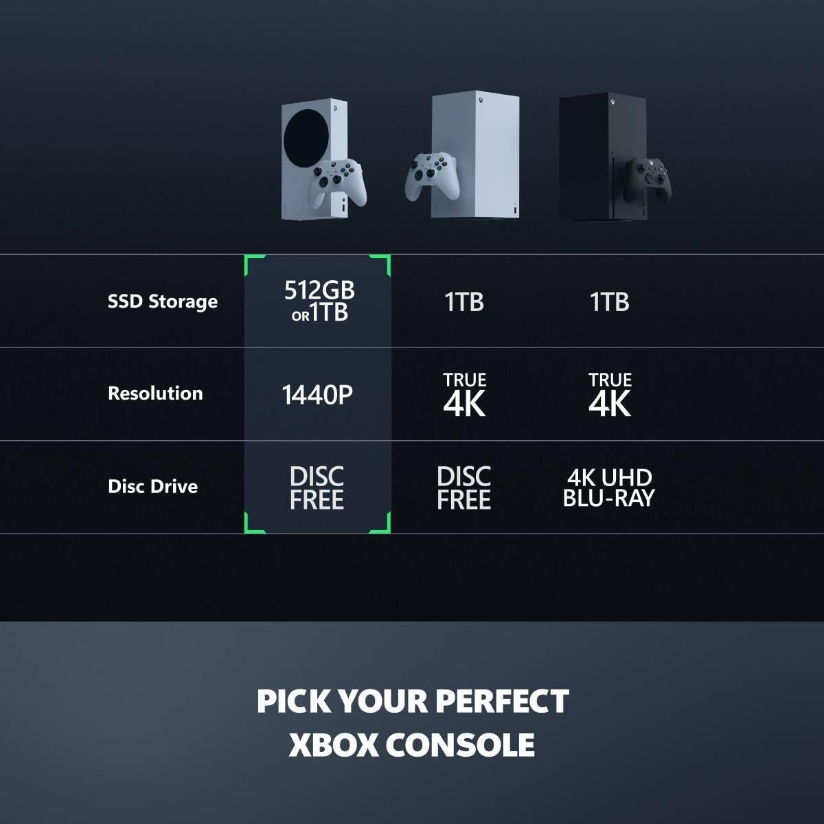 Dive into every mission, open world, game match, and more with speeds up to 120 FPS with the best value in gaming.Seamlessly switch between your favorite games and pick up right where you left off with Quick Resume. Play four generations of games with backward compatibility, including games that are optimized for Xbox Series X|S to look and play better than ever. Jump into your favorite games like Minecraft, Fortnite, and Roblox instantly with lightning-fast load times.Get the most out of your Xbox Series S with Xbox Game Pass Ultimate (membership sold separately). Play new games like The Outer Worlds 2, Call of Duty: Black Ops 7, NINJA GAIDEN 4, and more on day one. Choose from hundreds of high-quality games like DOOM: The Dark Ages, Tony Hawk’s Pro Skater 3+4, and Grounded 2. Dive into legendary franchises including Call of Duty, Forza, Diablo, Halo, and everything in between.^Specs:* 8-core AMD Zen 2 CPU @ 3.6GHz (3.4GHz with SMT)* AMD RDNA 2 GPU 20 CUs @ 1.565GHz* 4 teraflops GPU power* custom 7nm Enhanced SoC* 10GB GDDR6 RAM* 1440p @ 60fps, up to 120fps* 512GB PCie Gen 4 NVME SSD* 1TB expansion card slot (expansion card purchased separately)* Digital only* HDMI 2.1^Use with digital games only; console does not play physical discs. Games sold separately.120 FPS: Requires supported content and display; use on Xbox Series S as content becomes available.Xbox Game Pass: Game catalog varies over time (xbox.com/gamepass). Cancel subscription at any time to stop future charges.