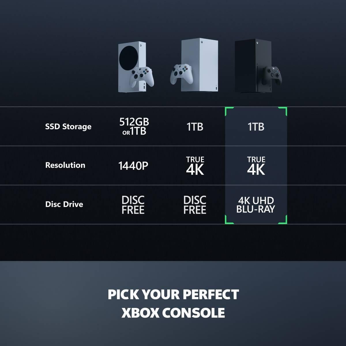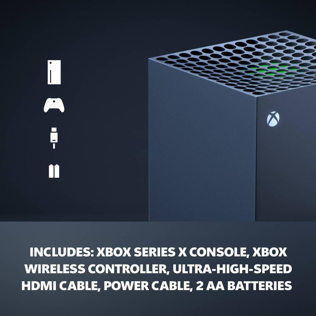 Introducing Xbox Series X, the fastest, most powerful Xbox ever. Play thousands of titles from four generations of consoles – all games look and play best on Xbox Series X. At the heart of Series X is the Xbox Velocity Architecture, which pairs a custom-SSD with integrated software for faster, streamlined gameplay with significantly reduced load times. Seamlessly move between multiple games in a flash with Quick Resume. Explore rich new worlds and enjoy the action like never before with the unmatched 12 teraflops of raw graphic processing power. Enjoy 4K gaming at up to 120 frames per second, advanced 3D spatial sound, and more. Get started with an instant library of 100+ high quality games, including all new Xbox Game Studios titles the day they launch like Halo Infinite and access to Xbox Cloud Gaming with Xbox Game Pass Ultimate (membership sold separately).\*Its industrial design enables us to deliver four times the processing power of Xbox One X in the most quiet and efficient way, something that is critically important in delivering truly immersive gameplay. We also designed Xbox Series X to support both vertical and horizontal orientation. It’s bold and unique, very much like our fans around the world and the team of collaborators and innovators who built it.The name Xbox is an expression of our deep history in gaming, our team’s unrelenting passion, and our commitment to both our fans and the future of gaming at Microsoft. It also signifies our belief that a gaming console should be for just that – gaming.*A superior balance of power and speed*Compared to the previous generation, Xbox Series X represents a superior balance of power and speed in console design, advancing on all technological fronts to delivering amazing, dynamic, living worlds and minimize any aspects that can take you out of the experience. Our job at Team Xbox is to give teams the tools they need to achieve their ambitions and tap into the console’s power with efficiency, a few of which we’re detailing today. Raw power is just part of the story:* Next Generation Custom Processor: Xbox Series X is our most powerful console ever powered by our custom designed processor leveraging AMD’s latest Zen 2 and RDNA 2 architectures. Delivering four times the processing power of an Xbox One and enabling developers to leverage 12 TFLOPS of GPU (Graphics Processing Unit) performance – twice that of an Xbox One X and more than eight times the original Xbox One. Xbox Series X delivers a true generational leap in processing and graphics power with cutting edge techniques resulting in higher framerates, larger, more sophisticated game worlds, and an immersive experience unlike anything seen in console gaming.* Variable Rate Shading (VRS): Our patented form of VRS empowers developers to more efficiently utilize the full power of the Xbox Series X. Rather than spending GPU cycles uniformly to every single pixel on the screen, they can prioritize individual effects on specific game characters or important environmental objects. This technique results in more stable frame rates and higher resolution, with no impact on the final image quality.* Hardware-accelerated DirectX Raytracing: You can expect more dynamic and realistic environments powered by hardware-accelerated DirectX Raytracing – a first for console gaming. This means true-to-life lighting, accurate reflections and realistic acoustics in real time as you explore the game world.*Immersion in an instant*The next console generation will be defined by more playing and less waiting. And when play begins, we know many gamers demand ultra-low latency to be as immersed and precise as possible. To this end, the team analyzed every step between player and game, from controller to console to display, and asked how we could make it faster.* SSD Storage: With our next-generation SSD, nearly every aspect of playing games is improved. Game worlds are larger, more dynamic and load in a flash and fast travel is just that – fast.* Quick Resume: The new Quick Resume feature lets you continue multiple games from a suspended state almost instantly, returning you to where you were and what you were doing, without waiting through long loading screens.* Dynamic Latency Input (DLI): We’re optimizing latency in the player-to-console pipeline starting with our Xbox Wireless Controller, which leverages our high bandwidth, proprietary wireless communication protocol when connected to the console. With Dynamic Latency Input (DLI), a new feature which synchronizes input immediately with what is displayed, controls are even more precise and responsive.* HDMI 2.1 Innovation: We’ve partnered with the HDMI forum and TV manufacturers to enable the best gaming experience through features such as Auto Low Latency Mode (ALLM) and Variable Refresh Rate (VRR). ALLM allows Xbox One and Xbox Series X to automatically set the connected display to its lowest latency mode. VRR synchronizes the display’s refresh rate to the game’s frame rate, maintaining smooth visuals without tearing. Ensuring minimal lag and the most responsive gaming experience.* 120FPS Support: With support for up to 120 FPS, Xbox Series X allows developers to exceed standard 60FPS output in favor of heightened realism or fast-paced action.*The next generation of game compatibility*The benefits of the next console generation extend in every direction, bringing greater visual fidelity and improved loading speeds to your existing gaming legacy, in addition to new games. We’re continuing our commitment to compatibility with Xbox Series X and investing in technology that makes game ownership easier across generations.* Four generations of gaming: Our commitment to compatibility means existing Xbox One games, including backward-compatible Xbox 360 and original Xbox games, look and play better than ever before. Your favorite games, including titles in Xbox Game Pass, benefit from steadier framerates, faster load times and imp