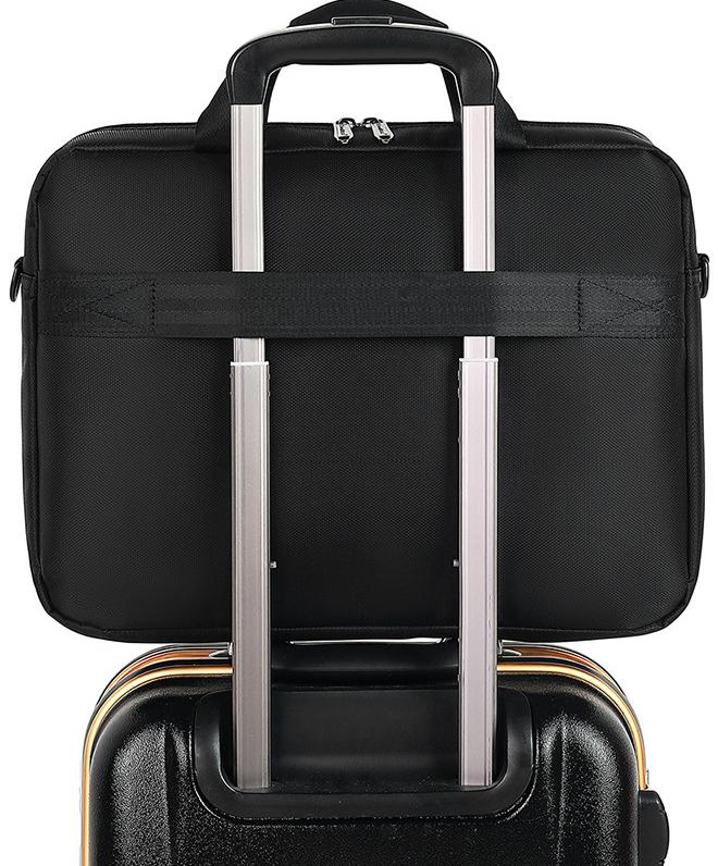 *This travel briefcase and laptop bag features a padded compartment for a 15.6" laptop, a multi-purpose pocket, and a front zippered pocket for your essentials.*It features a main compartment for laptop or tablet, two pockets with premium zipper for easy storage of accessories like chargers, adapters, mouse, cables, phone, wallet and more.*Features:** Laptop bags can be carried in a number of ways.* You can always find what you need when you need it.* You can carry it by hand by the handle, drape it over your shoulder with the shoulder strap, or put it on the handle of your luggage when traveling.*Specifics:** *Colour* – Black* *Material* – Polyester, Nylon* *Size* – 41×31×8cm* *Weight* – 660 grams