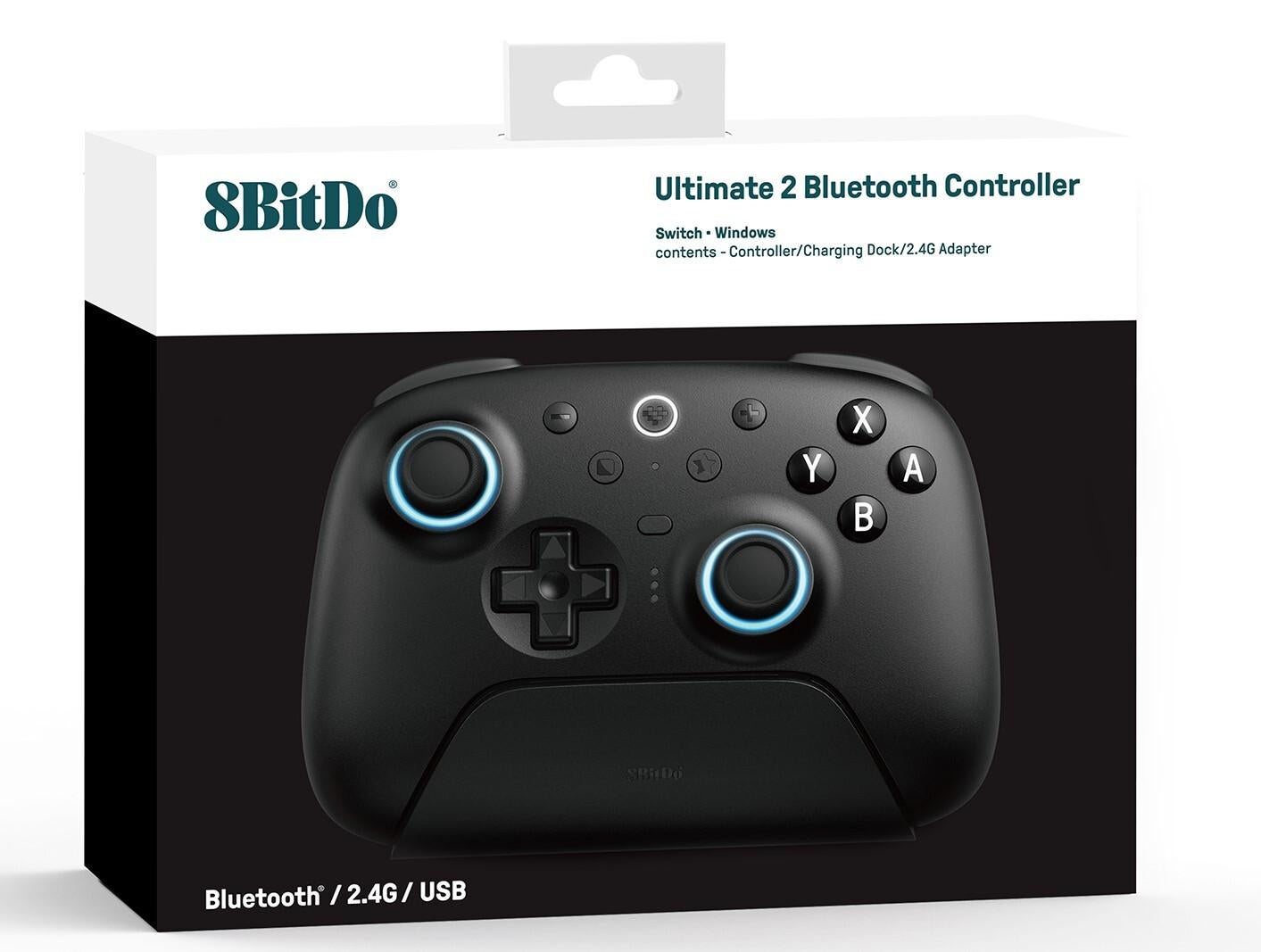 The 8BitDo Ultimate 2 Bluetooth Controller is the pinnacle of precision and versatility. The ultimate flagship controller is fully upgraded for next-level performance. Compatible with Switch and Windows.Engineered for elite gameplay, it delivers pro-level control with upgraded features and unmatched compatibility.*Integrated Charging Dock*A seamlessly integrated charging dock keeps your controller always charged and ready to play. Automatically reconnects when removed from the dock.*Equipped with TMR Joysticks*Featuring market-leading TMR joysticks, offering higher sensitivity, greater precision, and enhanced durability all while consuming less power.*Hall Effect Triggers & Mode Switching*Easily switch between linear Hall Effect triggers and non-linear tactile triggers for optimal control across different gaming scenarios.*Extra Fast Bumpers for Quick Reactions*Remappable Fast Bumpers (R4 and L4 buttons) are designed for personalized configuration to help you react faster in games. No software required.*Refined Tactile Feedback*Recalibrated bumpers and D-pad for a clicky but smooth feel. Light yet tactile.*More ways to play*Pro-level back buttons. Wear-resistant joysticks rings. 3 custom profiles.*Uninterrupted 2.4G Connection with USB-C Adapter*The signal extension ensures robust connectivity, offering you an unrivaled gaming journey, now updated with a USB-C adapter for even more gaming scenarios.*8BitDo Ultimate Software V2*Ultimate Software gives you elite control over every piece of your controller. Customize button mapping, adjust joystick & trigger sensitivity, vibration control and create macros with any button combination. Create controller profiles and switch between them at any time with the custom profile switchFeatures:* TMR Joysticks* Fire Ring – RGB lighting joysticks* Extra bumpers (R4 and L4)* 2 Pro back paddle buttons* Trigger mode switch* Hall Effect Triggers* Tactile bumpers and D-pad* Motion control (for Switch only)* Turbo function* Vibration* Support 8BitDo Ultimate Software V2Compatibility:* Switch (3.0.0 and above)* Switch 2 (20.1.1 and above)* Windows 10(1903) or aboveConnectivity:* Bluetooth – Switch* Wireless 2.4G – Switch, Windows* Wired – Switch, WindowsDimension / Weight:* 147_103_61.3 mm* 246gIncludes:* 8BitDo Ultimate 2 Bluetooth Controller* Charging dock* 2.4G adapter* USB cable* Instruction manual