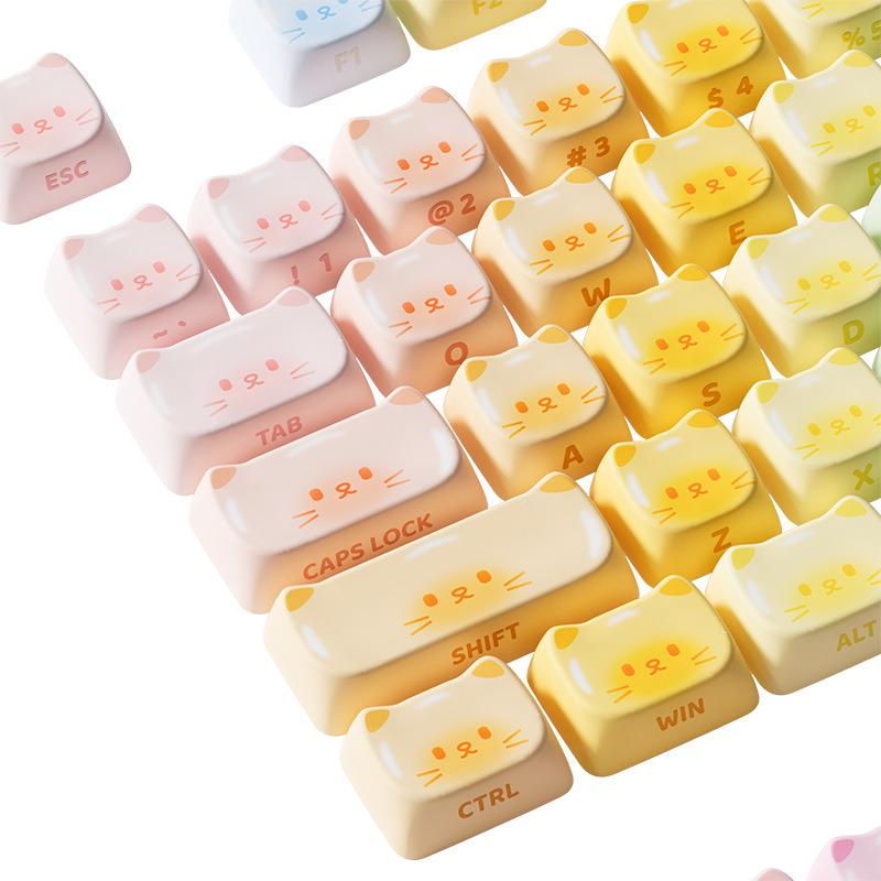 Akko’s original Colorful Cats Keycap set features a cat-ear-shaped design and rainbow colors, bringing whimsical charm to your keyboard.* PBT Dye-Sub Keycaps* MAO Profile* Compatible with major-sizes keyboard including but not limited to 60%, 64-key, 65%, TKL, 75%, 96%, 1800 compact, and full-size keyboards.*Technical Specifications:** *Material:* PBT* *Number of Keys:* 142* *Keycap Profil:* MAO* *Layout Standard:* US-ANSI* *Manufacturing Process:* Dye-Sublimation