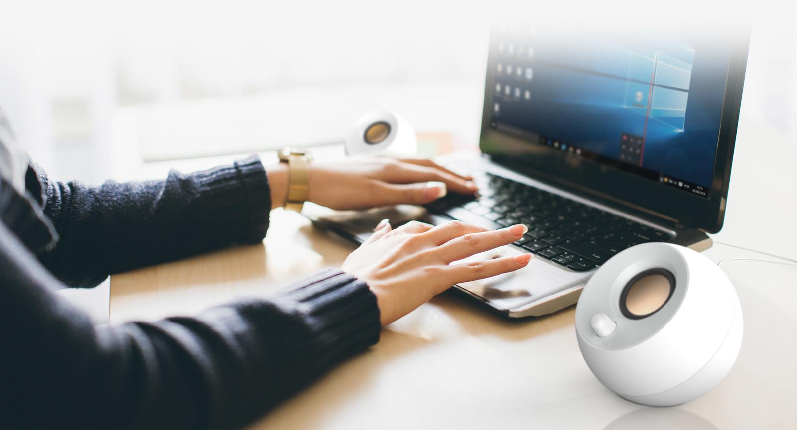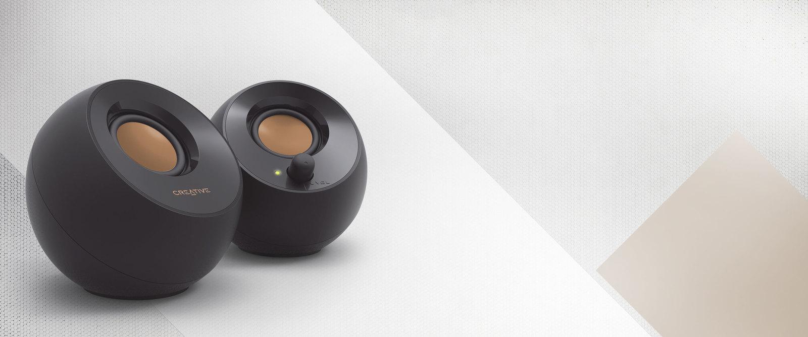 Inspired by the zen Japanese rock garden, the orb-shaped Creative Pebble is a sleek and elegant 2.0 speaker system that looks perfect in any home and office. It features a 45° elevated sound stage for enhanced audio projection and is powered by a single USB cable for hassle-free music entertainment.* *X Marks the Spot:* Featuring a 45° elevated custom-tuned far-field driver solution, the Creative Pebble directs audio to your ears, placing you in the sweet spot for great audio enjoyment.* *Small but Mighty:* With its built-in passive radiators and an impressive combined RMS of 4.4W, the small Creative Pebble is able to deliver balanced audio with depth, immersiveness and crystal clear details. Simply connect your device via the 3.5mm input and get ready to be blown away.* *Convenience Within Reach:* Instantly control your volume with the Pebble's convenient front panel control knob.* *No Desk Space? No Problem:* Measuring at only 4.4 inches wide each, the Creative Pebble can be conveniently placed next to your PC monitor without compromising on valuable desk space. What's more, the Pebble is conveniently powered by a single USB cable without the need for a wall outlet.* *Music to Match Your Style:* The Creative Pebble looks as good as it sounds. Choose from an exquisite black or pristine white to match your style and desk setup.*SPECIFICATIONS** *Speaker Configuration:* 2.0 system, Computer Speakers* *Connector Type:* Aux-in, USB Power, PD Adapter* *Operating Temperature:* 0—45°C* *Recommended Usage:* Movies / Music, Gaming* *Dimensions:*** *Left:* 122 × 116 × 115 mm / 4.8 × 4.5 × 4.5 inches** *Right:* 122 × 116 × 115 mm / 4.8 × 4.5 × 4.5 inches* *Weight:*** *Left:* 300g / 0.66 lbs** *Right:* 345g / 0.76 lbs* *Cable Length (End-to-end):*** *Line In:* 1.2m cable terminated with 3.5 mm stereo jack** *Right to Left Satellite:* 1.2m molded cable* *Drivers Configuration:* 2 × 2″ Full-range Drivers* *Channels:* 2.0* *Frequency Response:* 100–17,000 Hz* *Signal-to-Noise Ratio (SNR):* 86 dB* *Controls:* Volume: Yes* *Color:* Black, White* *Supported Platforms:* Windows PC, Mac, Nintendo Switch* *System Requirements:*** USB power via desktop/ laptop USB ports or USB power adapter up to 5V 1A output** Analog audio devices with a 3.5 mm stereo output* *Package Contents:*** Creative Pebble Satellite Speakers** Warranty leaflets
