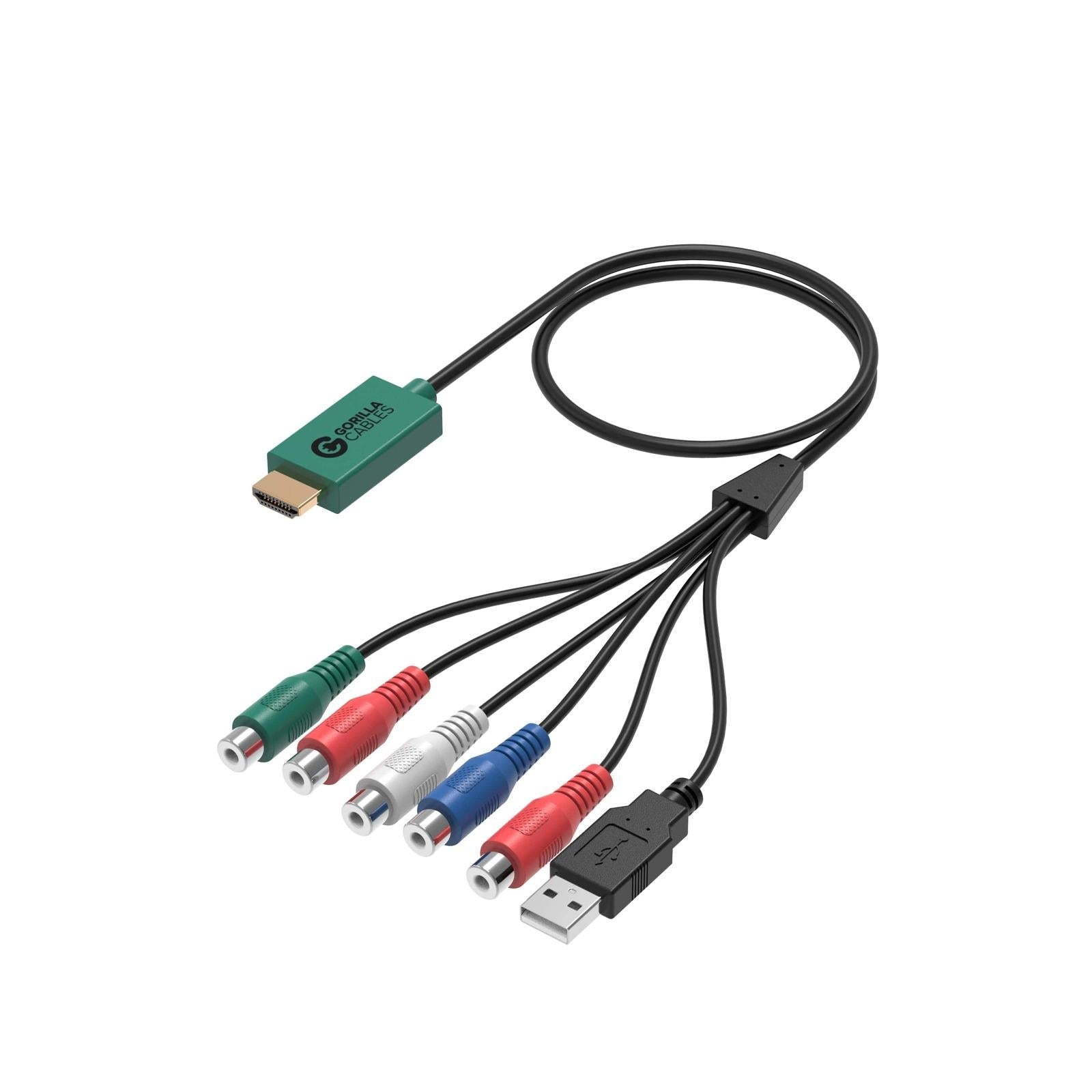 *_Please note: This Cable is not Bi-directional. It should be used to connect a modern HDMI output to an older TV._*---Introducing the Gorilla Cables HDMI to Component RCA AV Converter – your gateway to seamless HDMI to YPbPr conversion with unparalleled ease and performance. Here's why it's the ultimate solution for your audio and video needs:* *Effortless Setup:* Say goodbye to complicated installations. Our adapter is designed for simplicity, allowing you to connect and start enjoying in seconds, without the hassle of extensive setup.* *Complete Conversion:* Transform your HDMI signal into pristine YPbPr video output effortlessly. Whether you're connecting to an older display or simply prefer the YPbPr format, our adapter delivers uncompromised conversion quality.* *High-Bandwidth Support:* With support for 165MHz/1.65Gbps per channel (6.75Gbps all channel) bandwidth for HDMI input, rest assured that every detail of your high-definition content is faithfully preserved and transmitted.* *Versatile Output:* Enjoy analogue video output up to UXGA and 1080p, ensuring compatibility with a wide range of displays and devices. Whether you're watching movies, gaming, or giving presentations, experience stunning visuals with every use.Upgrade your audiovisual experience with the Gorilla Cables HDMI to YPbPr + R/L Adapter, RCA Cable. Effortless setup, complete conversion, and uncompromising performance – all in one compact package. Unlock the full potential of your entertainment system today!* *Features:*** *Easy to Use:* Install in seconds, no need of setting.** *Conversion:* It could convert complete HDMI into YPbPr video output.** Supports 165MHz/1.65Gbps per channel (6.75Gbps all channel) bandwidth for HDMI Input.** Supports Analogue Video output up to UXGA and 1080p.*Technical Specifications** *Signal Inputs/Output:*** *Input Video Signal:* 0.5–1.0 volts p-p** *Input DDC Signal:* 5 volts p-p (TTL)** *Input connection:* HDMI A female(19pin)** *Output connection:* YPbPr, R/L** *HDMI video input format:* 480i/576i/480p/576p/720p/1080i/1080p** *YPbPr video output format:* 480i/576i/480p/576p/720p/1080i/1080p** *Audio output format:* 2 channel LPCM* *Operating Frequency:*** *Vertical Frequency Range:* 50/60Hz** *Input Video Amplifier Bandwidth:* 1.65Gpbs/165MHz* *Mechanical:*** *Length:* 1m** *Weight(Net):* 74g** *Warranty:* 1 Year* *Environmental:*** *Operating Temperature:* 0 ℃ to +45℃** *Operating Humidity:* 10% to 85% RH (no condensation)** *Storage Temperature:* –10℃ to +80℃** *Storage Humidity:* 5% to 95% RH (no condensation)* *Power Requirement:*** *External Power Supply:* USB Power** *Power consumption (Max):* 0.75W