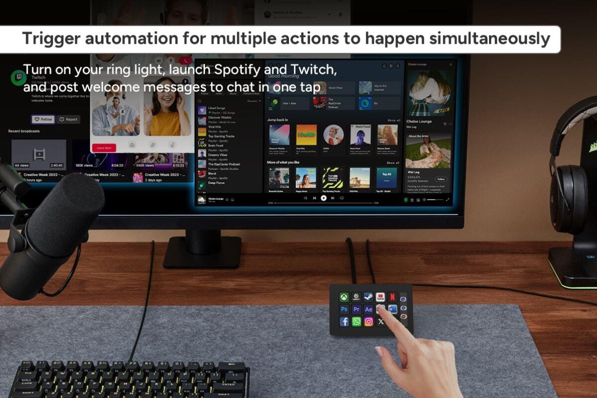 Elevate your computing productivity and workflow with the Kogan™ Stream Deck, designed to streamline your day with 15 programmable keys, custom preset modes, and a powerful library of plugins and automation tools.* _15 touch-controlled LCD keys._ Launch apps and manage tasks easily.* _Preset modes._ Create custom setups for specific workflows.* _Multi-action automation._ Trigger multiple tasks with one tap.* _Extensive plugin library._ Boost productivity with added integrations.* _Personalise with icon packs._ Customise icons to match your style.* _Royalty-free tracks._ Access background music for a professional edge.* _Compact design._ Perfect for desktops, maximising space and functionality. 15 customisable LCD keys for enhanced controlThe Kogan Stream Deck’s 15 touch-sensitive keys provide seamless control over various applications and tasks with just a tap. Each key displays a unique icon on an LCD display, allowing you to launch apps, mute your microphone, post on social media, and more. Customisable with your most-used commands, it’s designed to simplify your workflow and save you time.Preset modes for optimised workflowsSave time and maximise efficiency by creating preset modes for specific tasks. Whether you’re streaming, editing videos, or working on office tasks, set up tailored modes for each function to quickly access the tools you need. With a tap, you’re ready to switch modes and handle diverse tasks throughout your day.Multi-action automation for streamlined routinesSimplify complex routines by programming multiple actions into a single keypress. This feature allows you to automate a series of tasks with one tap, transforming the way you work. From opening multiple applications to launching a series of commands, the Kogan Stream Deck enables one-tap control over your entire workflow.Access to a powerful plugin libraryWith a vast library of plugins, the Kogan Stream Deck boosts productivity with additional tools and integrations. Download plugins, icon packs, and royalty-free music tracks to personalise your deck, extend its functionality, and add professional touches to your content creation.Compact, customisable setupDesigned for desktop efficiency, the Kogan Stream Deck is compact, with every feature and function you need close at hand. Customise each key with icon packs to match your aesthetic, creating a professional workspace that enhances your daily workflow.*Technical Specifications*Connections* Cable length: 1.5m* USB Interface: USB-A to USB-CDimensions* Dimensions: 131 × 80.2 × 55.5mm* Weight: 188gFeatures* Colour: Black* Programmable Keys: 15 LCD keysGeneral* Compatible Operating System: MacOS 10.15 or later & Windows 7 or later* Design: Compact design* Display Type: LCD display* Features: Multi-action automation, Downloadable plugins, Custom preset modes & LCD visual interface* Functionality : Multi-functional* Material: Acrylic, ABS & Silicone* Type: Stream DeckKeys* Type: Touch LCD keysPower* Input: 5V/0.6A* Wattage: 3WWarranty* Manufacturer Warranty: 1 Year