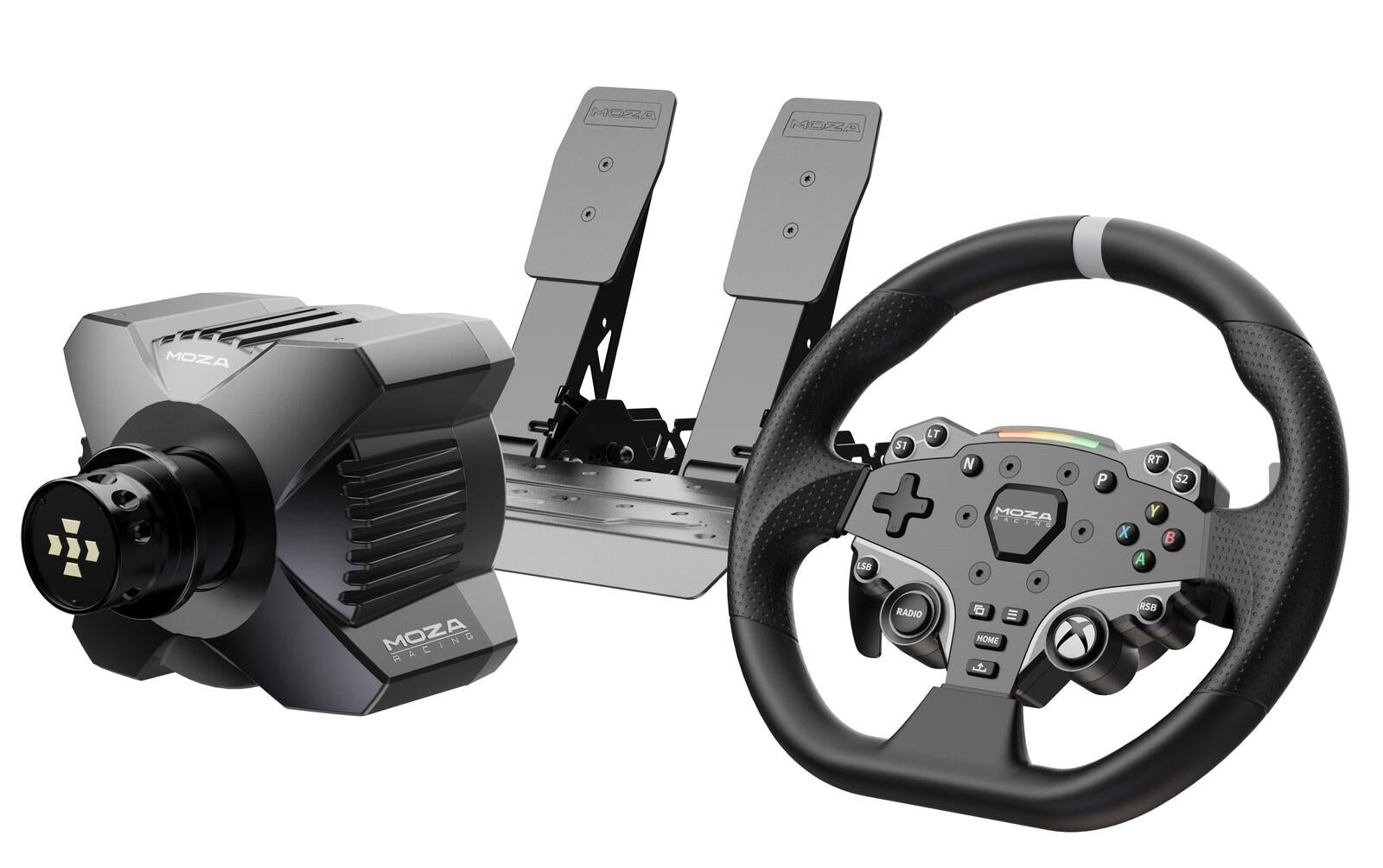 Enjoy seamless compatibility and exceptional performance on both Xbox consoles and PC.* 3.9 Nm DD Servo Motor – The Direct Drive servo motor delivers a stable and realistic torque output of 3.9 Nm. It flawlessly replicates the steering force found in road and race cars, providing detailed and immersive feedback direct to your hands.* Innovative X Shape Design – Setting it apart from other MOZA wheelbases, the R3 features a distinctive X shape design at the front, not only adding a robust and eye-catching appeal but also enhancing the cooling effect.* The Maximum & Minimum Philosophy – Its compact body and low power consumption make it ideal for use in various setups, while still delivering maximum torque output and maintaining excellent temperature control performance.* Aviation-grade Aluminum – Crafted entirely from aviation-grade aluminum alloy, the R3 base boasts a sleek appearance while ensuring superior durability and endurance.* Ultra-low Torque Ripple & Groove Torque – Our engineering team have worked tirelessly to achieve the ultimate steering feedback, featuring ultra-low torque ripple and groove, for a smoother experience than ever.* Intelligent Temperature Control System – Our advanced system continuously monitors the temperature of the motor and electronic components and employs intelligent temperature control strategies to deliver stable and reliable performance in all circumstances.* 15-bit Encoder – The motor encoder sports a 15-bit ultra-high resolution, ensuring steering is accurate and gives a true-to-life feel.*MOZA Pit House Control Center** Pit House is MOZA Racing's command center and allows full customization and fine tuning of your MOZA devices. With just a single click, you can launch the game directly from the Pit House software and seamlessly configure it to obtain telemetry data.* With presets and easy to understand settings recommended by Moza Racing and professional sim racers, beginners can enjoy a plug and play experience catered for many popular racing titles.* To allow full customization and optimization, we offer up to 15 force feedback-related adjustment options, such as mechanical friction and road feel sensitivity, etc.* With MOZA's revolutionary force feedback curve adjustment feature, the relationship between force feedback input and output can now be made non-linear resulting in a much more dynamic force feedback output from the base* MOZA's FFB equalizer allows full customization and fine-tuning of the FFB effects spectrum for a perfect setup in any conditions.* In MOZA Pit House, you can configure the double-clutch paddles, knobs, joysticks, rpm lights, etc. of the steering wheel including the clutch engagement point of the paddles, the rotary dial mode, the color of the rpm lights, the relationship between the rpm timing and engine speed, the brightness of buttons and rpm lights, etc.* In the pedal settings page, adjust pedal travel, output curve, pressure sensing intervention point, and more, allowing you to quickly master the correct braking techniques and effectively improve lap times.* With one-click updating, you can quickly and easily update Pit House and your devices to the latest versions and firmware, ensuring an optimum overall user experience.*Mobile App Control*Enjoy on-the-fly changes using the MOZA app! Force feedback, pedal settings, and more can all be changed in real-time. One-click importing allows easy hassle-free setup transfers to new devices.*ES Steering Wheel** Eco-Friendly PU Leather Grips – Our non-slip, sweat-proof, and durable grips offer a premium feel while being environmentally friendly with PU leather.* Officially Licensed for Xbox – Introducing the direct drive wheel for Xbox & PC. Combining Xbox console performance with MOZA Direct Drive technology for the most immersive racing experience.* Aluminum Wheel Rim – Enjoy solid and sturdy aluminum alloy for rigidity, durability, and maximum immersion.* MOZA QR System – With MOZA's quick release system, you can effortlessly switch wheels within seconds. Experience a stable and solid connection that seamlessly integrates across the entire MOZA ecosystem.* Aluminum Alloy Shifter – Experience the satisfaction of crisp and precise gear shifts with our all-aluminum shifter paddles. Each shift feels seamless and clean.* 22 Customizable Buttons – 22 fully customizable buttons allow for racers to make all of the on-board adjustments they need while in the heat of battle.* Flow Shift Light – With our innovative Flow Shift Light, you have the freedom to customize your RPM and shift indicators, adding a unique touch to your racing setup.*SR-P Lite Pedals** Full High-Strength Steel – Pure, high-strength steel gives these pedals a rock-solid durability and feel.* High Precision Hall Sensor – A high-precision hall sensor ensures maximum stability and durability for your pedals, allowing for consistency and performance.* For the Pros, or for Home – Our anti-slip pad ensures that even if you do not have a full rig, you can still enjoy high-quality pedals! The anti-slip makes consistent braking and throttle control easy.* Adjustable Pedal Spacing – For optimum ergonomics, pedals can be easily spaced and configured for maximum comfort and accessibility.* Detachable, Flexible Setup – Whether racers want to mount inverted pedals or have other ideas, our detachable design allows for home setups or professional simulator designs.* Output Curve Adjustment – Through MOZA Pit House, enjoy full customization to find the best throttle and braking method that works for you.Specifications:* Material: High-strength steel* Plate Material: CNC Aluminum Alloy* Color: Black* Braking Sensor: Pressure sensor+angle sensor* Max Range of Pressure Sensor: 75KG* Throttle Sensor: Angle sensor* Clutch Sensor: Angle sensor* Angle Sensor Resolution: 16-bit (65536ppr)* Pedal Spacing: Adjustable* Pedal Surface Height: Adjustable* Pedal Connection Port: USB direct* Pedal Trav