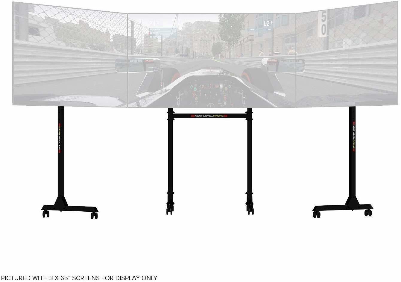 The Next Level Racing Free Standing Triple Monitor Stand finishes off your racing simulator setup to give ultimate immersion to race like a professional. The stand supports triple screens from 32 – 65” allowing up to a huge 195” of peripheral vision for incredible realism. The stand includes both lockable wheels for easy movement and height adjustable feet, the choice is yours. The design is based on customer feedback allowing you to have your screens in the perfect position of your choice whether that is directly behind the wheel or further back from your cockpit and allowing you to change the position of the screens easily and quickly. Being completely free standing and with lockable wheels it also makes it the perfect monitor stand for events, trade shows and sim racing centres.Features:* Solid and rigid design that supports 3 × 32– 65” monitors with VESA patterns ranging from 75 × 75 to 450 × 660* Wider design allows the monitor to be placed directly behind the wheel or further away if preferred* Lockable castor wheels allow portability as well as quick and easy angle adjustment of outer screens* All forms of adjustment including angle, tilt and height* Perfect as a stand-alone monitor stand for events, trade shows and sim racing centres