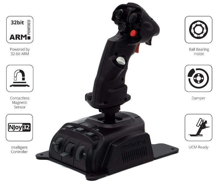 *Gladiator EVO ‘Space Combat Edition’ Premium*The Gladiator EVO Premium is the basis of a modular VKB flight control system.The ‘Space Combat’ grip is the most versatile of our grips and is equally suitable for flight and space simulation games.With lots of buttons and axes you may configure the controller to your own personal needs and depending on the aircraft or spacecraft you fly.*Features** Base & Grip made from industrial grade ABS, Gimbal made from glass-fiber-reinforced PA* Tabletop base plate made from steel* 32-bit ARM Controllers inside base and grip* ALPS buttons (Japan OEM) for extended longevity* Contactless MaRS sensors with High Resolution* Plug & Play with Driver-Free Installation (Recommended for Most Users)* Firmware Upgrade via USB* Onboard Memory for Storing Profiles* Optional Programming Software Available (For Advanced Users)*Content:** 1 GNX SCG Premium Grip (Left)* 1 GNX EVO Base*Specifications (for GNX SCG Premium Grip):** Compact grip design – Perfect for tabletop joysticks* Lockable Twist (Z-axis) with contactless MaRS sensor* 1 Dual Action Trigger* 1 Rapid Fire Trigger* 3 Hat switches with centre push (8-way)* 3 Buttons* 1 analog mini stick with center push (8-way)* Programmable red colour LED & Programmable RGB LED* 2 interchangeable palm rests (total 3 palm-size adjustments)* Extra button module for C1 position* Extra hat switch module for A1 position* Trigger cover*Specifications (for GNX EVO Base):** 2 Contactless MaRS sensors on X and Y axes* 1 Auto-centreing 3-position switch* 1 Throttle wheel & 1 Rotary encoder* 3 buttons* Gimbal with ball bearings* Adjustable dry clutches for user-tunable load* 2 Programmable single-color LEDs* Set of soft & strong springs*Compatible with:** STECS Throttles* GNX Extension modules* T-Rudder Mk.IV* Universal Controller Mount UCM-S GL*Dimensions:**Height table top to top of grip:* 23.5cm approx*Base plate length (deep):* 18.5cm approx*Base plate width (left to right):* 14.5cm approx